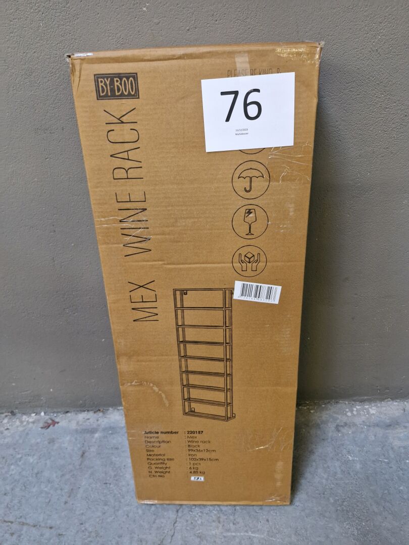 1 casier à vin mexicain en métal noir BY BOO N°220157 99x36x12 cm dans son carton
