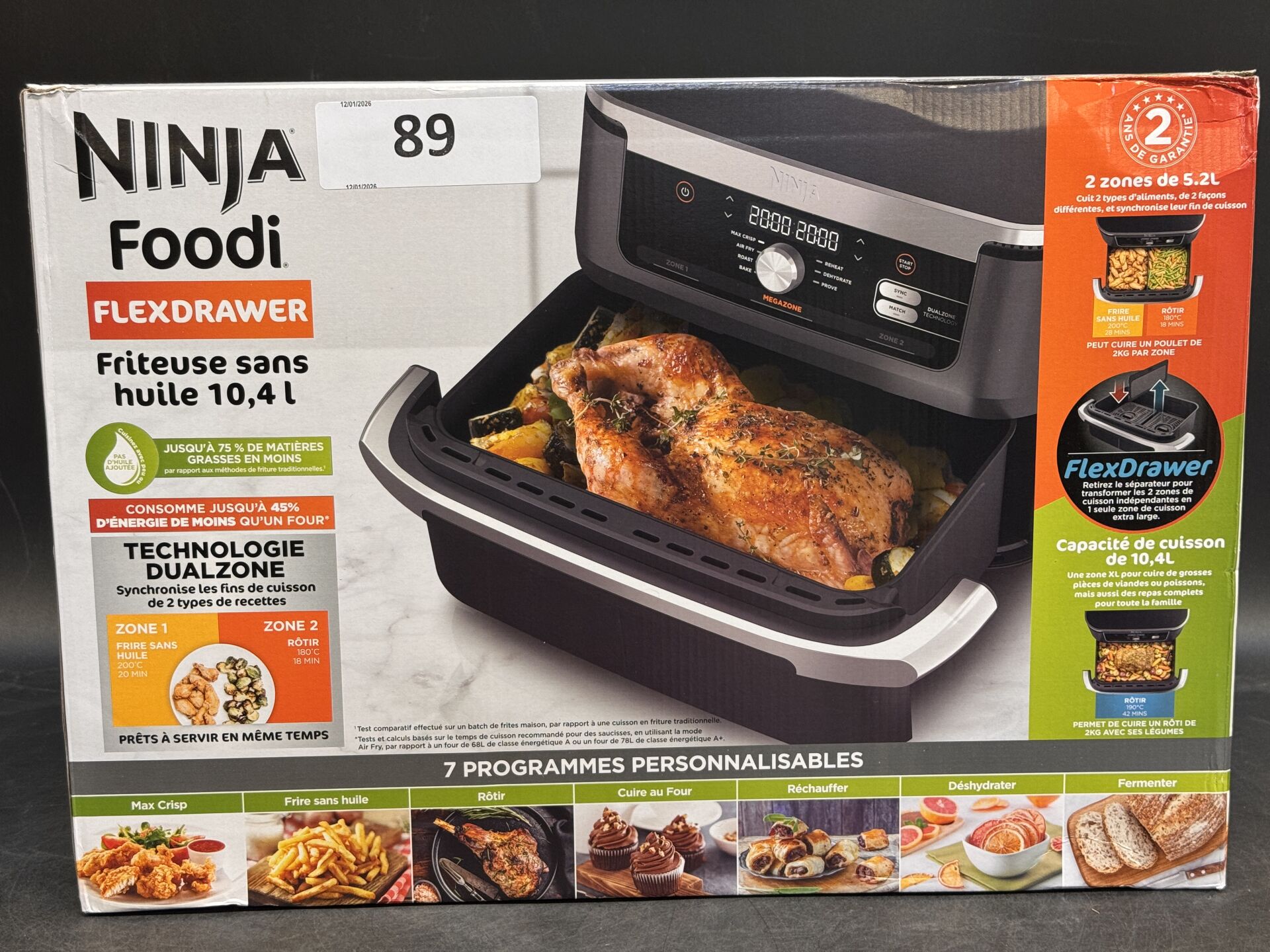 AIRFRYER NINJA FOODI FLEXDRAWER (avec scellés) EXPEDITION POSSIBLE (ce lot chez vous en France métropolitaine pour 43,45€) Lot issu de colis non réclamés : état de fonctionnement non garanti.