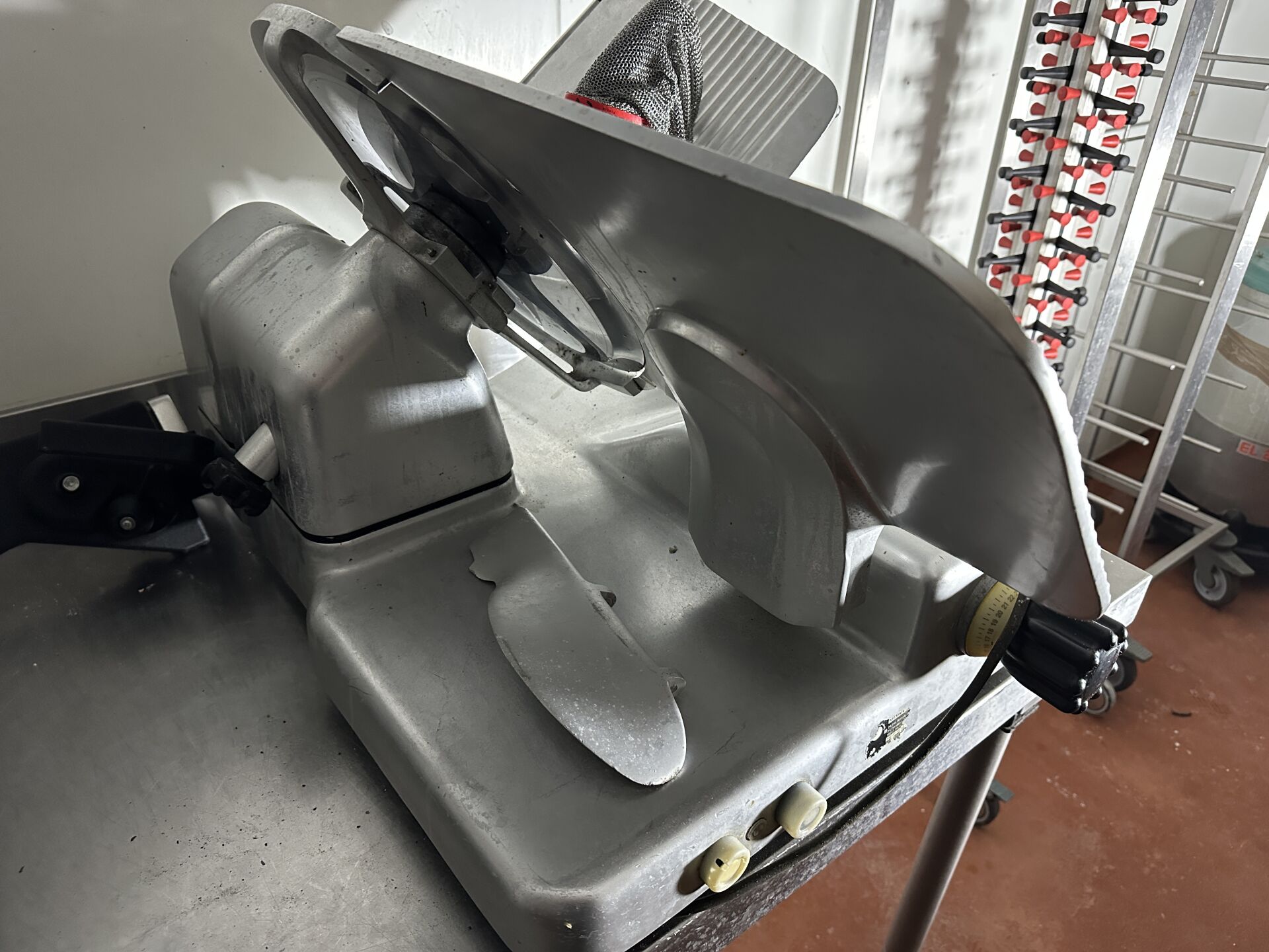 1 trancheuse à jambon alu MANICONI type 350 IM avec gant anti-coupure en cotte de mailles