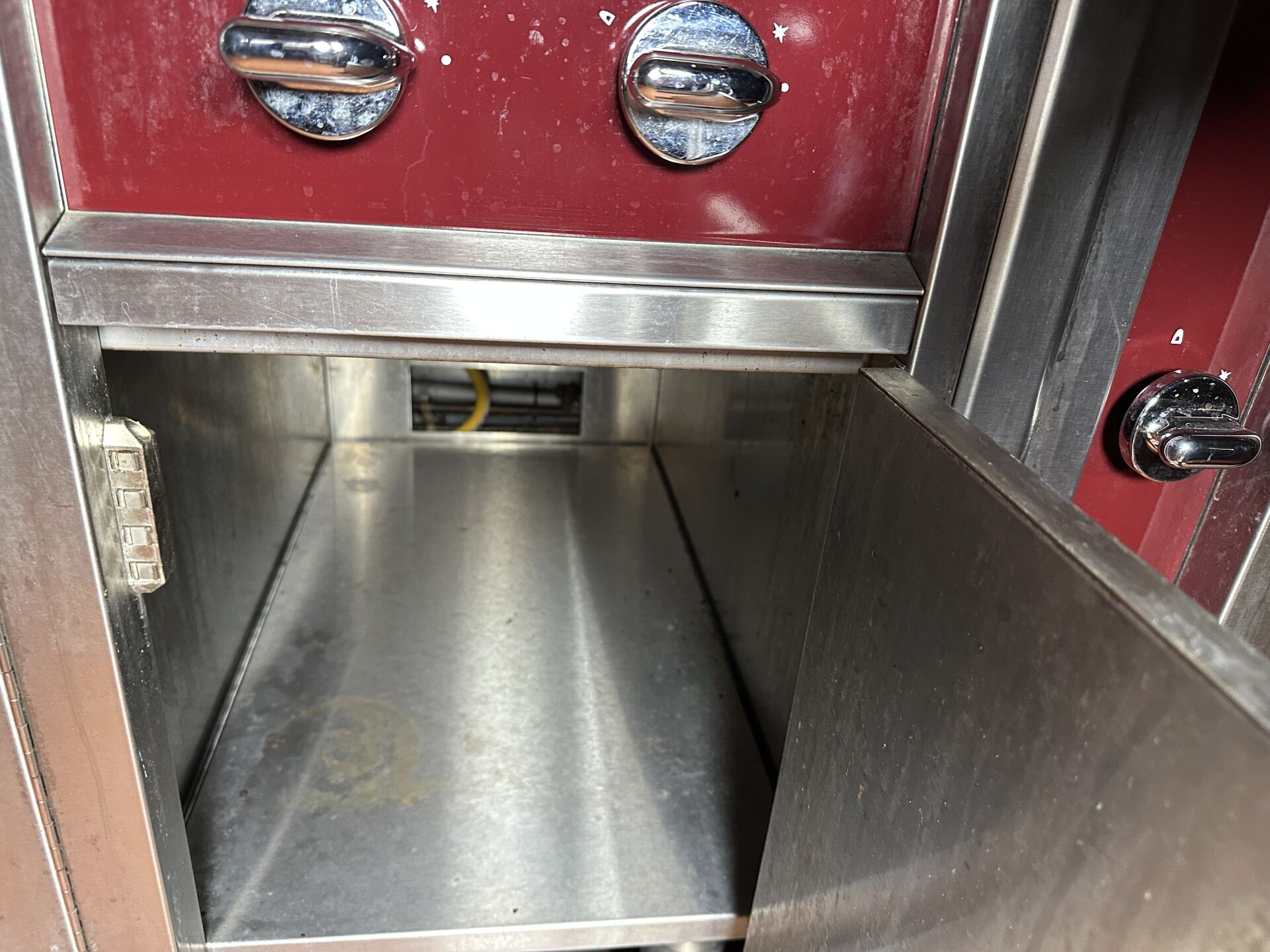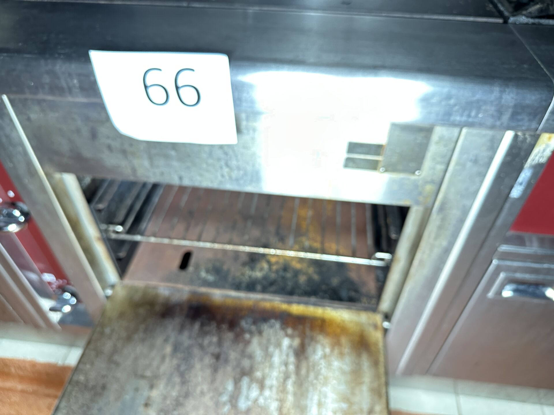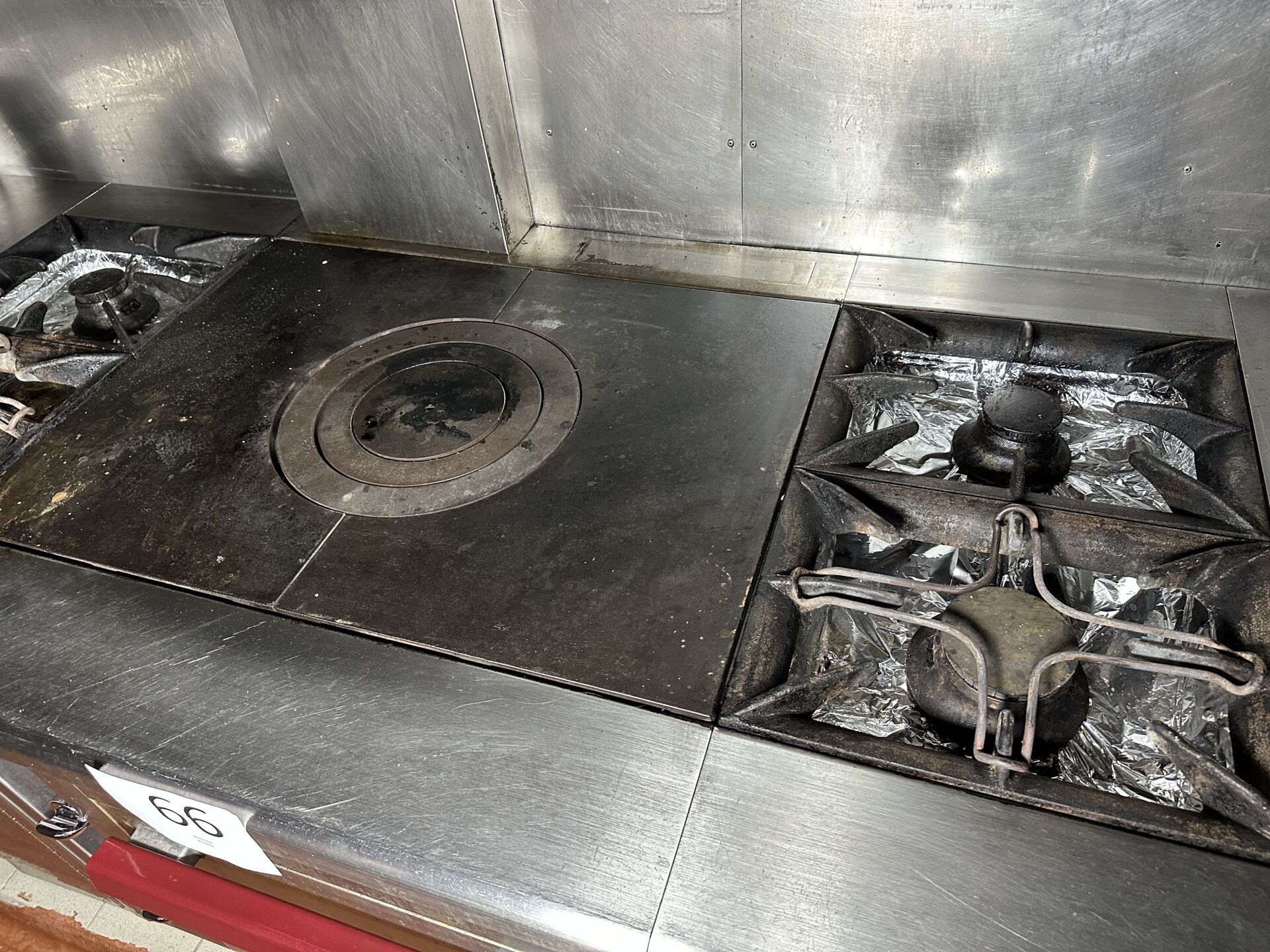 1 piano de cuisson gaz inox CHARVET ref. PRO900G1PL, avec 4 feux vifs, 1 plaque coupe-feu, 1 four et 2 portes en partie basse 240 x 90 cm (en 5 éléments)