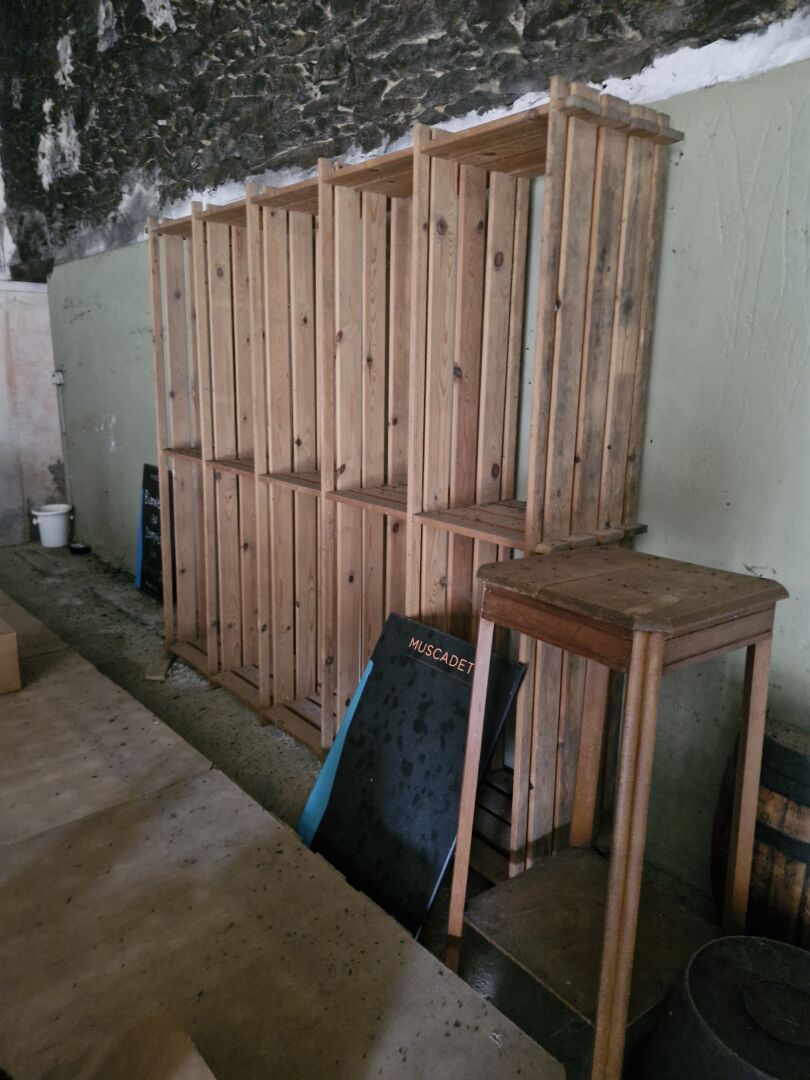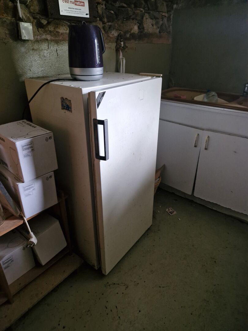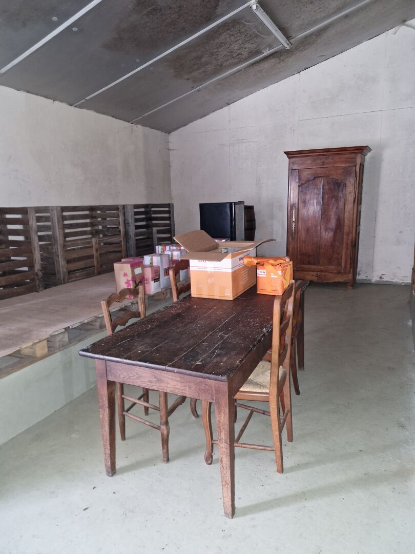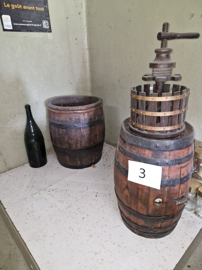 1 lot d'objets décoratifs dont petits fûts de chêne 3 lots de casiers bois 120 x 50 x 100 cm 1 étagère bois 10 cases 170 x 150 cm 1 table bois 176 x 77 cm 5 chaises bois, différents modèles 1 armoire bois 1 porte 105 x 60 x 205 cm 1 réfrigérateur FAURE (ancien modèle) 1 bouilloire électrique MORPHY HARDS 1 pendule murale
