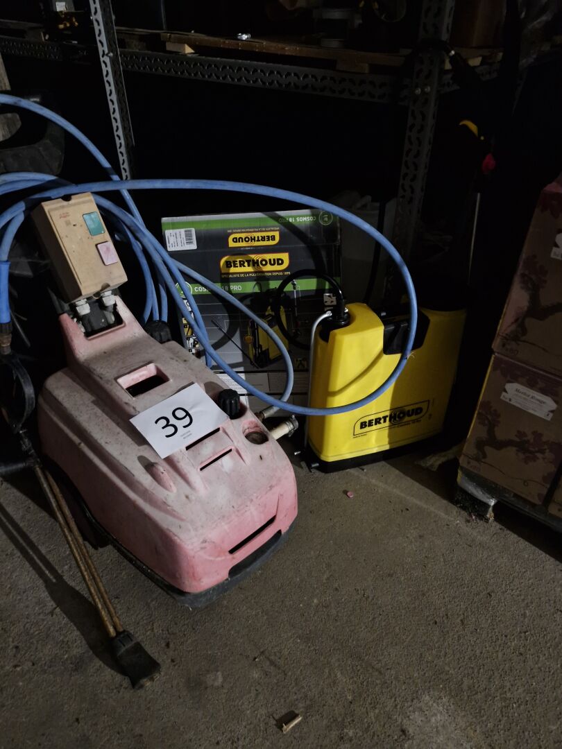 1 climatiseur mobile SUPRACLIMATICS Blizair 3000 (état de fonctionnement inconnu) 1 chargeur de batterie LACME Vacmatic 300 1 nettoyeur haute pression eau froide sans marque ni plaque apparente 1 pulvérisateur dorsal manuel BERTHOUD, 18L
