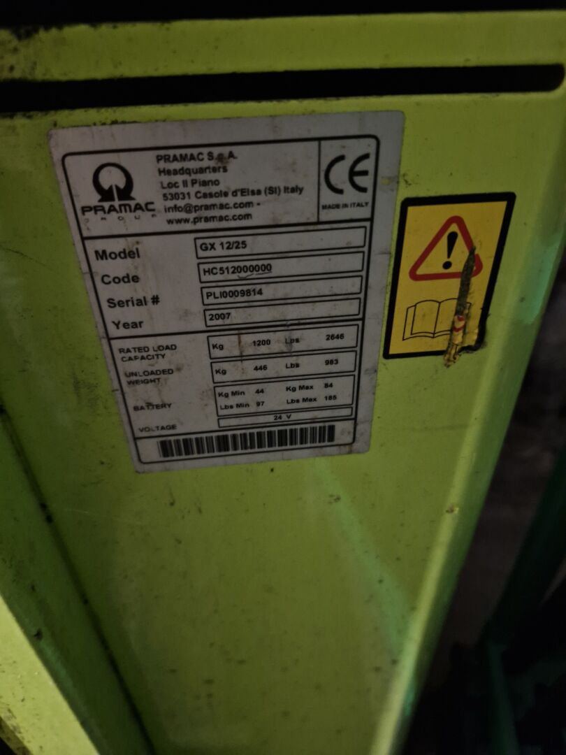 1 gerbeur électrique PRAMAC GX 12/25 n°PLI0009814, capacité 1.2T, de 2007