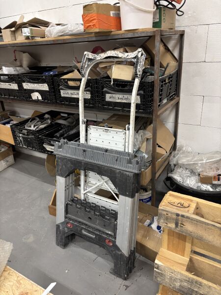 Brouette en métal laqué bleu Paire de tréteaux en aluminium et PVC noir Paire de tréteaux en bois naturel