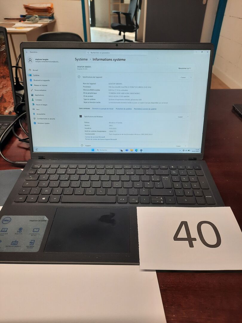 Ordinateur portable DELL INSPIRON 15 3000, Core i 5 RAM 8 Go 11eme génération, chargeur