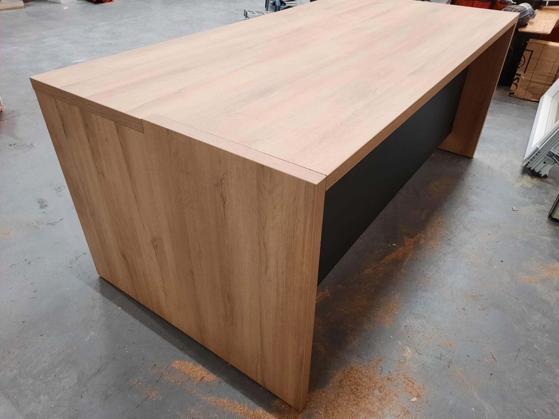 Bureau plat en mélaminé façon chêne 180x90 cm