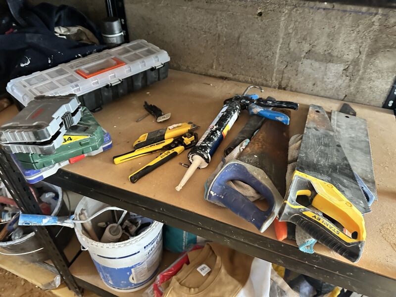 Chariot avec poignée télescopique MAGNUSON comprenant : 4 coffrets emboitables, l'un visserie les 3 autres pour trousse à outils 2 boites l'une EXPERT avec outillage à main dont clé à douille, à mollette et divers Petit outillage à main Ventouse RUBY VACUUM SC-200