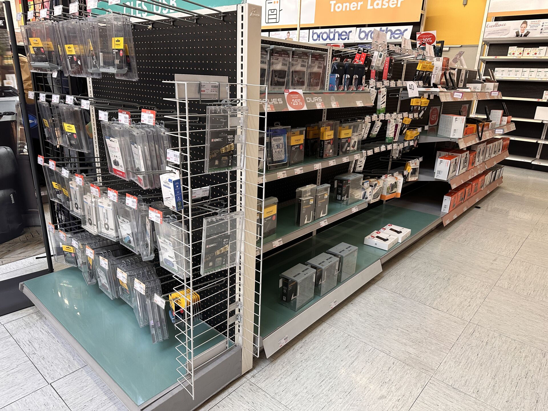Enlèvement les 19 et 20 Février 2026 de 9h à 17h , Frais de mise à disposition 50 € TTC : En tête d'une gondole, 1 stock de clés USB, câbles de charge, de 4 à 256Gb (environ 60 articles), Sur 2 modules de gondole, 1 stock de disques durs internes ou externes dont KINGSTON, VERBATIM, SEAGATE, EMTEC, INTENSO. De 256 Gb à 4 To (environ 20 articles) + 1 lot de cordons USB, chargeurs mobiles, bases de chargement téléphones, support téléphone auto, ...(environ 30 articles), Sur 2 modules de gondole, 1 stock de téléphones sans fil dont GIGASET et PANASONIC (environ 35 articles)