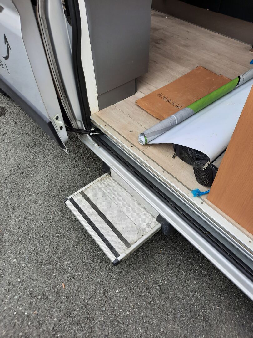 PUBS ADHESIVES RAYURES ET FROTTEMENTS - CHOCS ET ENFONCEMENTS AILE AVD, PORTE AVD - FROTTEMENTS RETROVISEUR D BOITE MECA 6 VITESSE S- CLIM - RADIO - GPS INTERIEUR TISSU CAMERA DE RECUL - AIDE AU STATIONNEMENT - VITRES ET RETROVISEURS ELECTRIQUES - REGULATEUR-LIMITATEUR DE VITESSE - AVERTISSEUR DE FRANCHISSEMENT DE LIGNE MARCHEPIED ELECTRIQUE LATERAL THULE - CAISSE AMENAGEE AVEC CUISINE DE DEMONSTRATION FEU ARRIERE GAUCHE FELE / PETIT ENFONCEMENT AILE AVANT DROITE / PTR = 6T / PTC = 3.5T / 6X2.05M . DEFAILLANCES MAJEURES: ORIENTATION FEU DE CROISEMENT AVG. DEFAILLANCES MINEURES : RIPAGE EXCESSIF. LAVE GLACE PAREBRISE- ORIENTATION FEU DE BROUILLARD AVG. CHOC CARROSSERIE AVD - SERRURE OU GACHE DETERIOREE PORTE AVD.