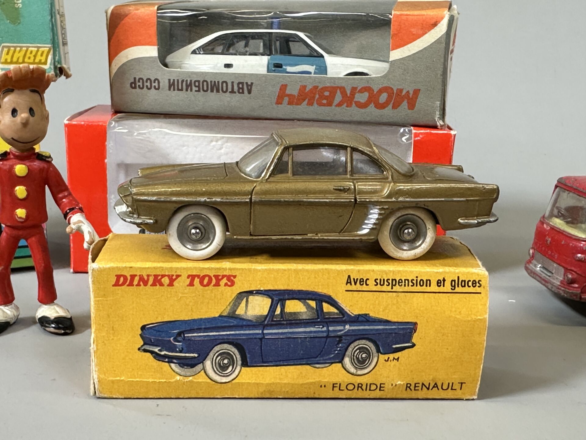 1/43ème, 1/87ème Dinky Toys, Gorgi Toys, Onyx, Leseney, URSS et Plastoy (94) lot de 12 véhicules et une figurine dont Renault Floride Réf 543 en boite (rabats manquants)et Vespa 2 cv (pneus manquants), Simca cargo Calberson (repeint), 2 véhicules du cirque ( Land Rover, et Bedford tractor), 3 URSS en boites d'origines défraîchies, ( Lada 2121, moskvich, une camionnette RAF), une Ferrari f1 89 N. Mansel de chez onyx NB, une locomotive, un bus impérial et le Groom (Spirou) BE à état d'usage. Expertise réalisée par Monsieur Stanislas LEMOINE.