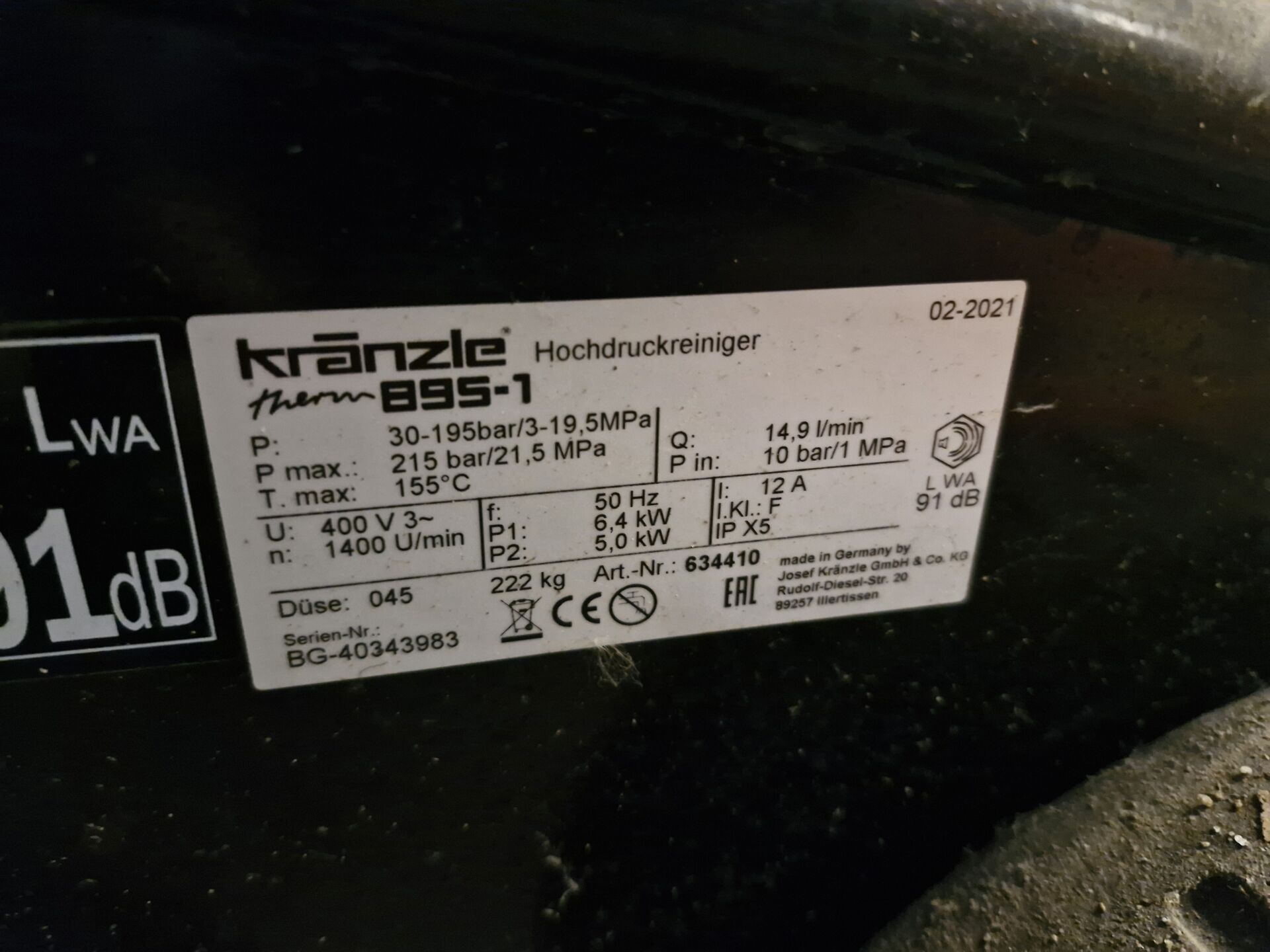 1 nettoyeur haute pression eau chaude KRANZLE 895-1, (2021) N/S : 634410 avec notice