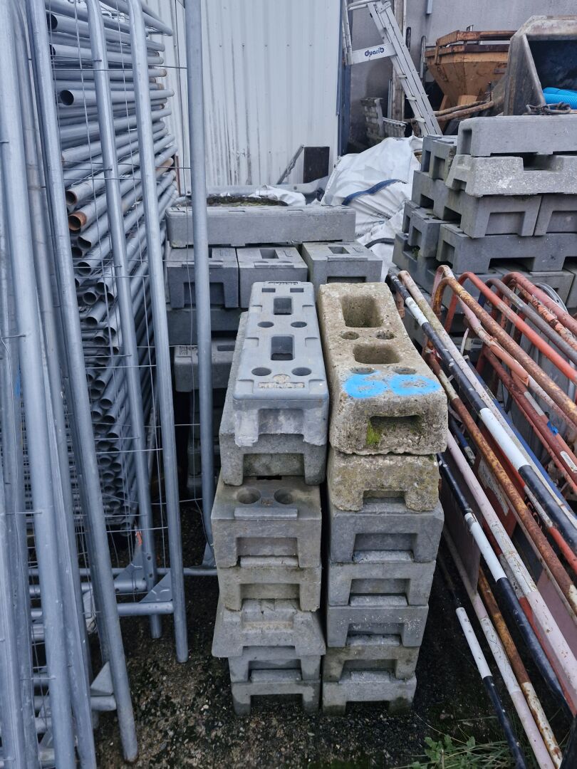 1 lot de grilles de chantier type HERAS (environ 70, états divers) 1 lot de plots (environ 70)