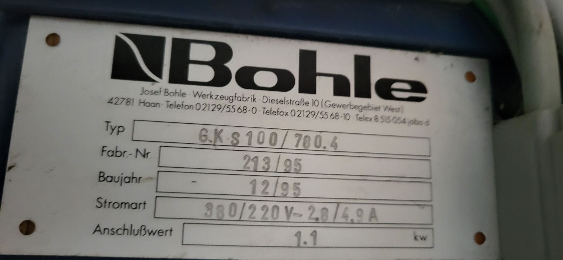 Tank à poncer ou polir BOHLE type 6KS100/780 triphasé N/S : 213/95 250 x 95 cm Servante métallique hauteur réglable