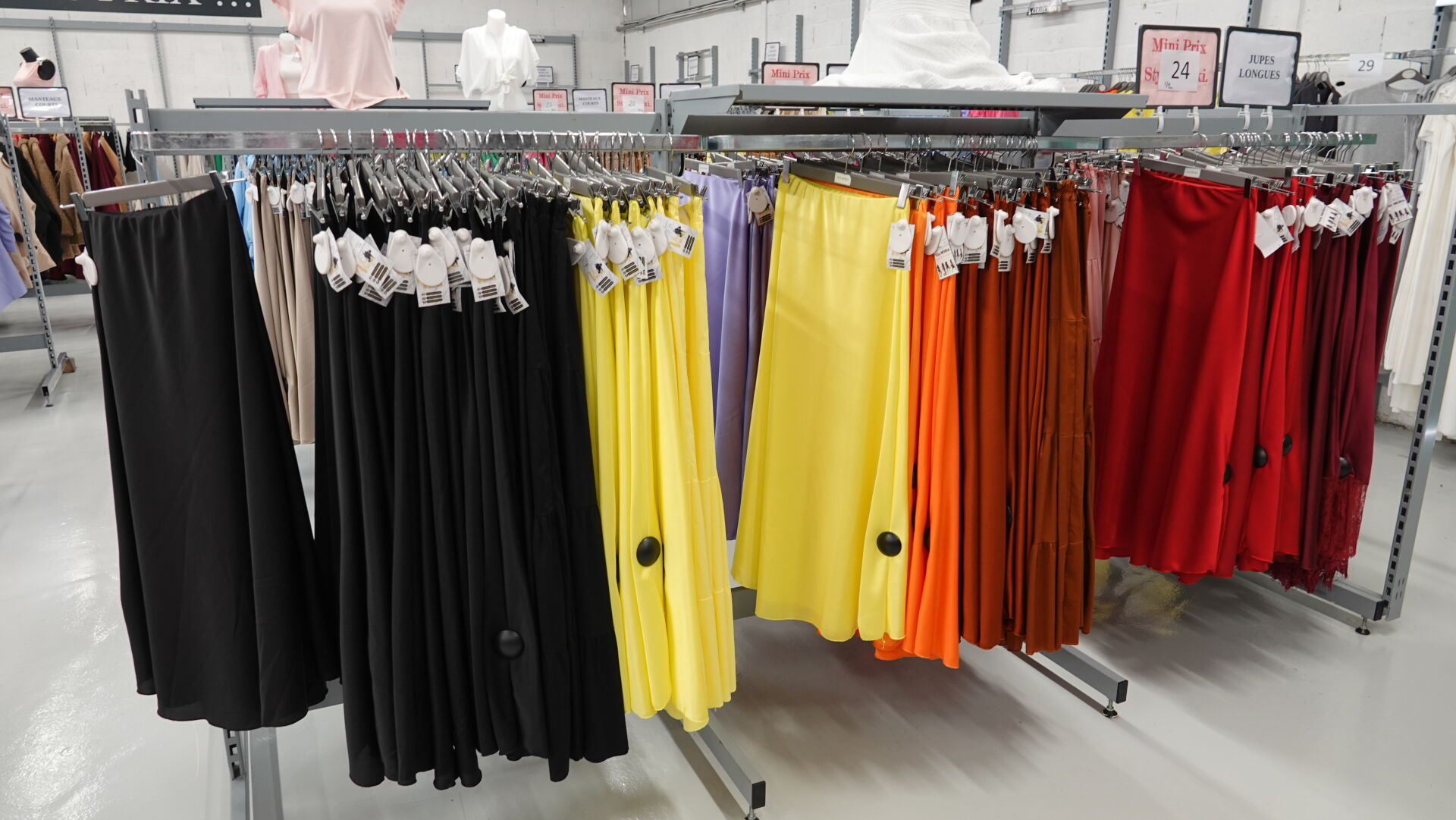 Ensemble d'environ 239 jupes longues pour femme, tailles et coloris divers