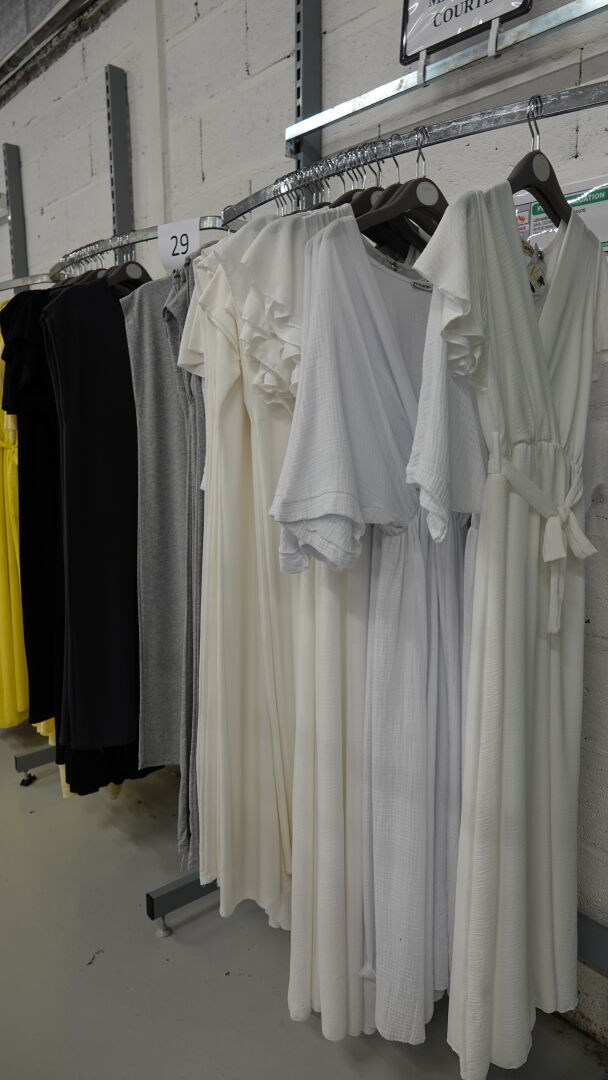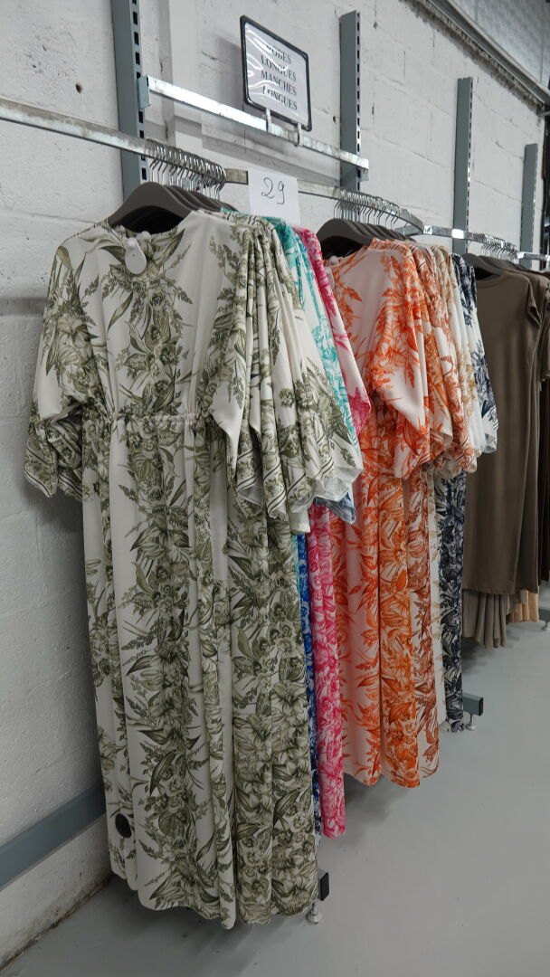 Ensemble d'environ 229 robes longues à manches courtes & longues pour femme, tailles et coloris divers