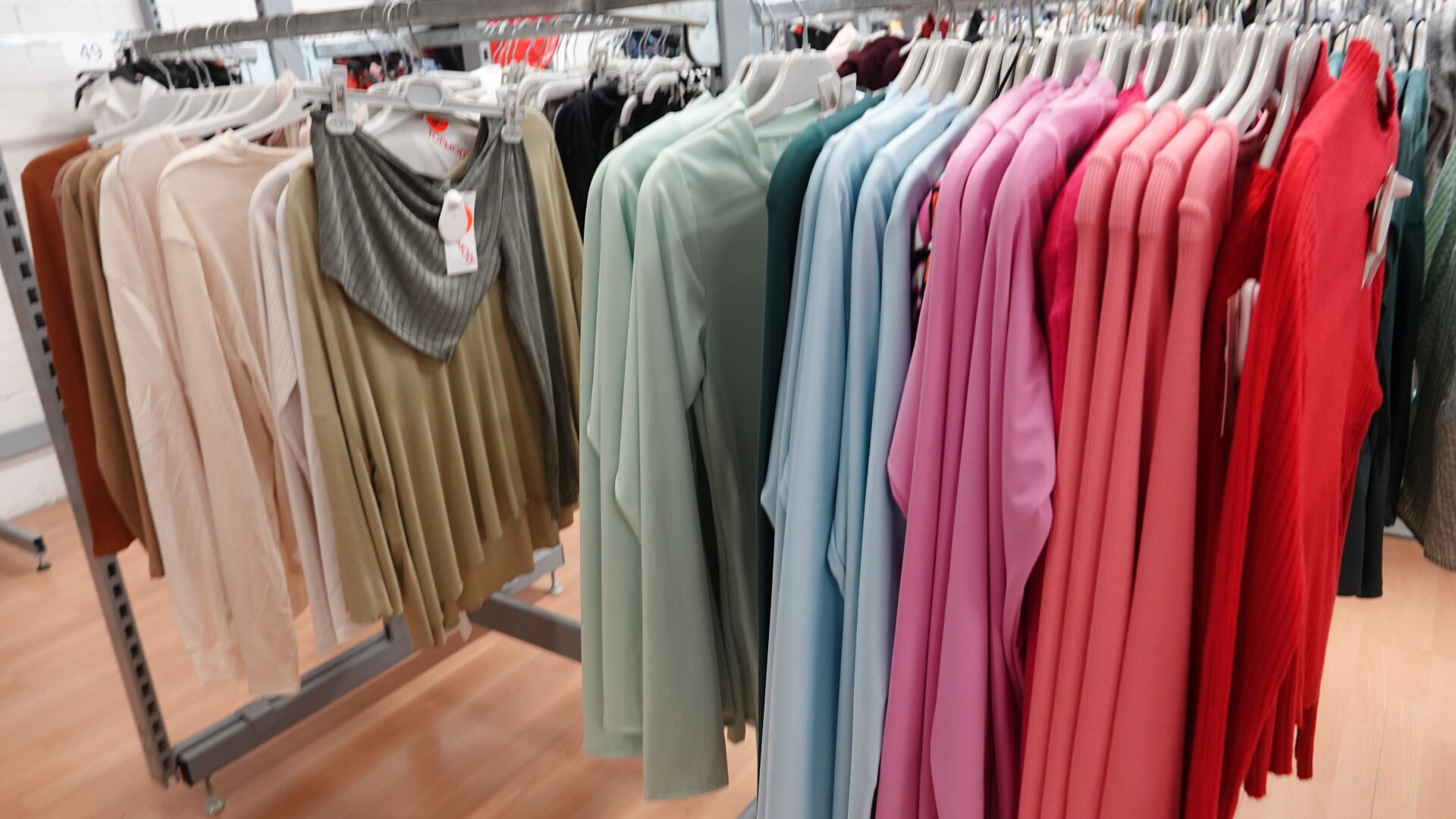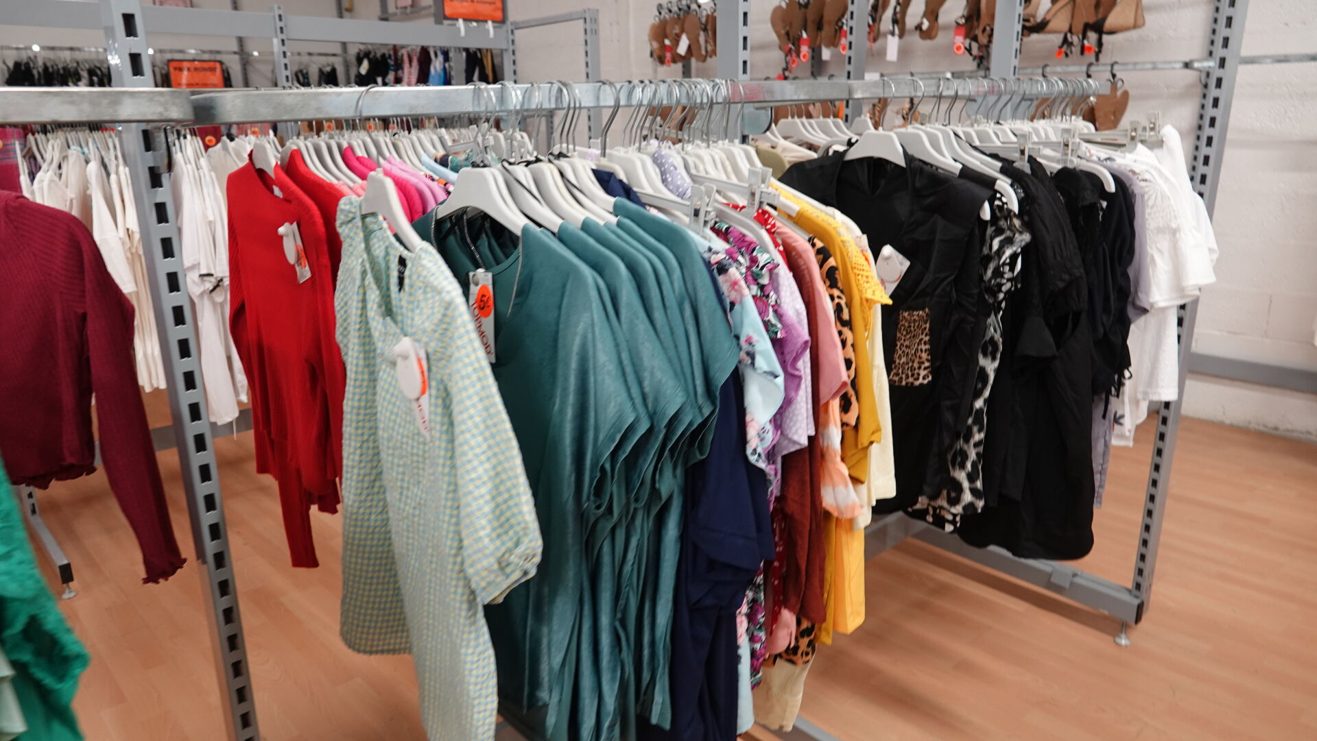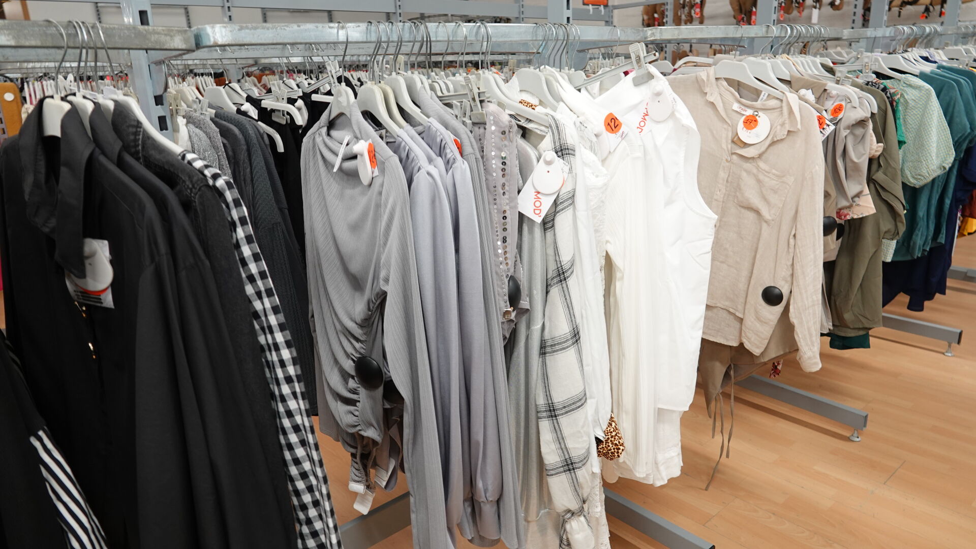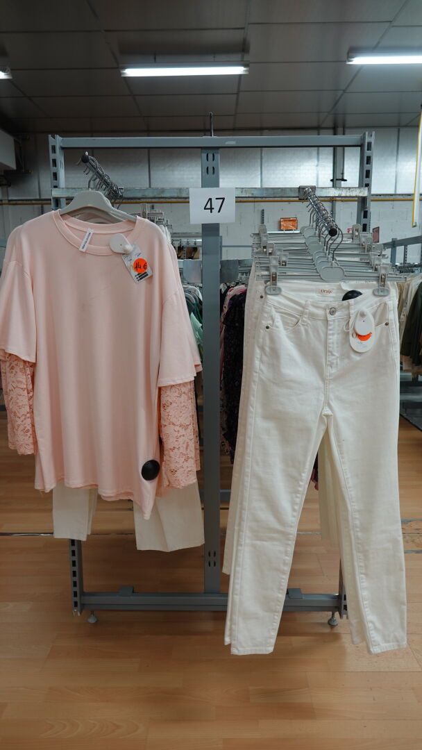 Ensemble d'environ 379 chemisiers, pulls, pantalons pour femme, tailles et coloris divers