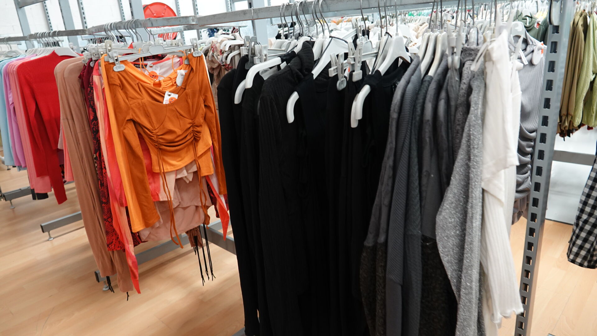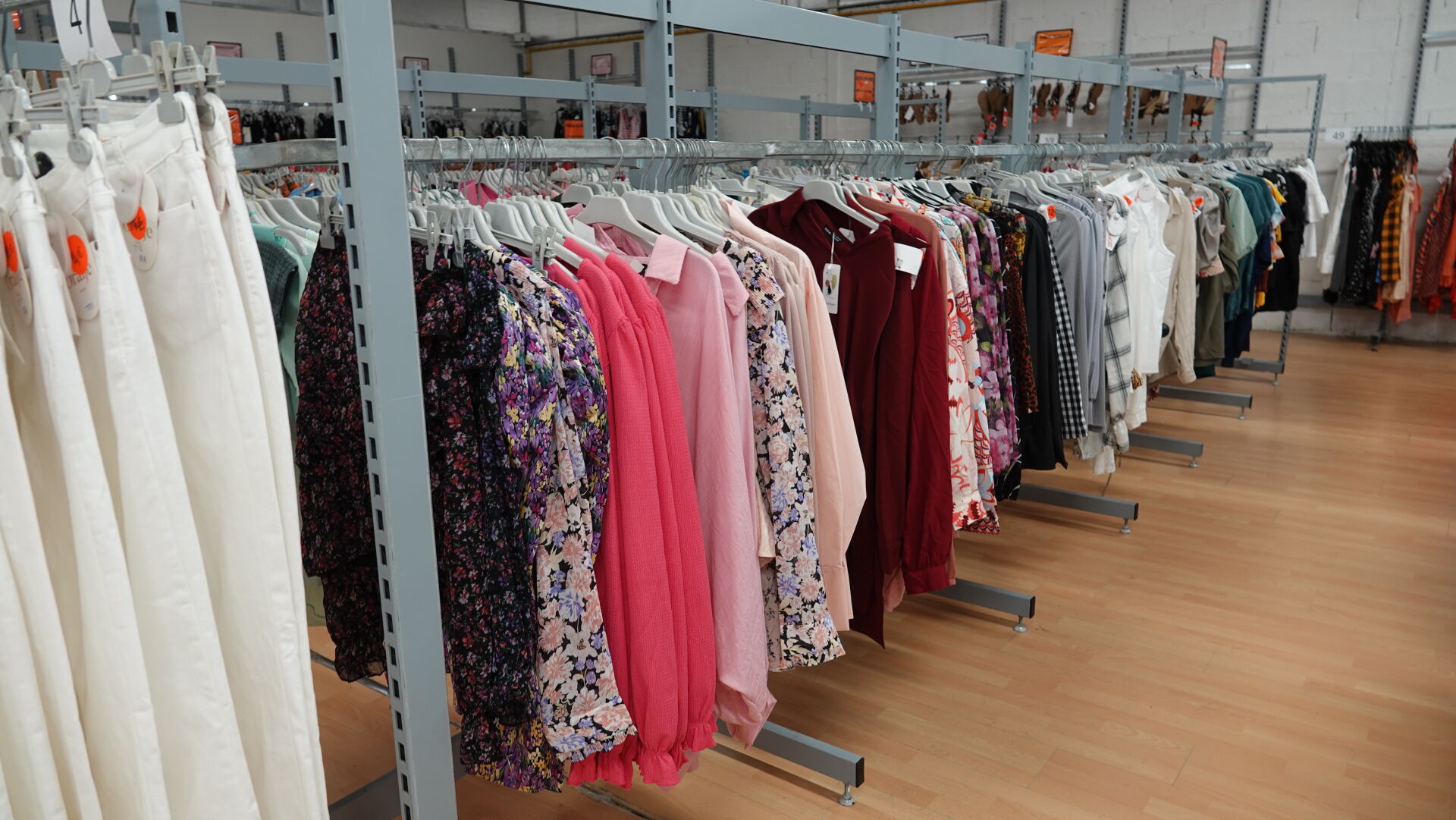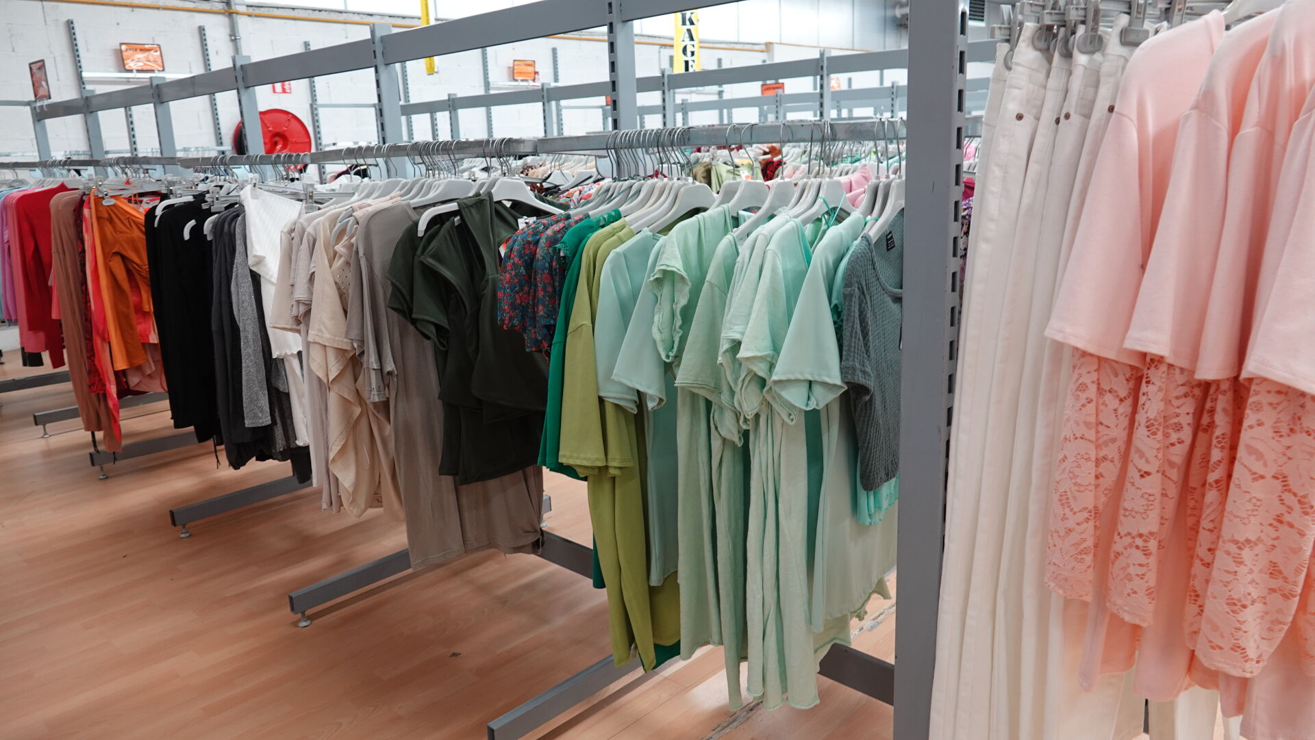 Ensemble d'environ 379 chemisiers, pulls, pantalons pour femme, tailles et coloris divers