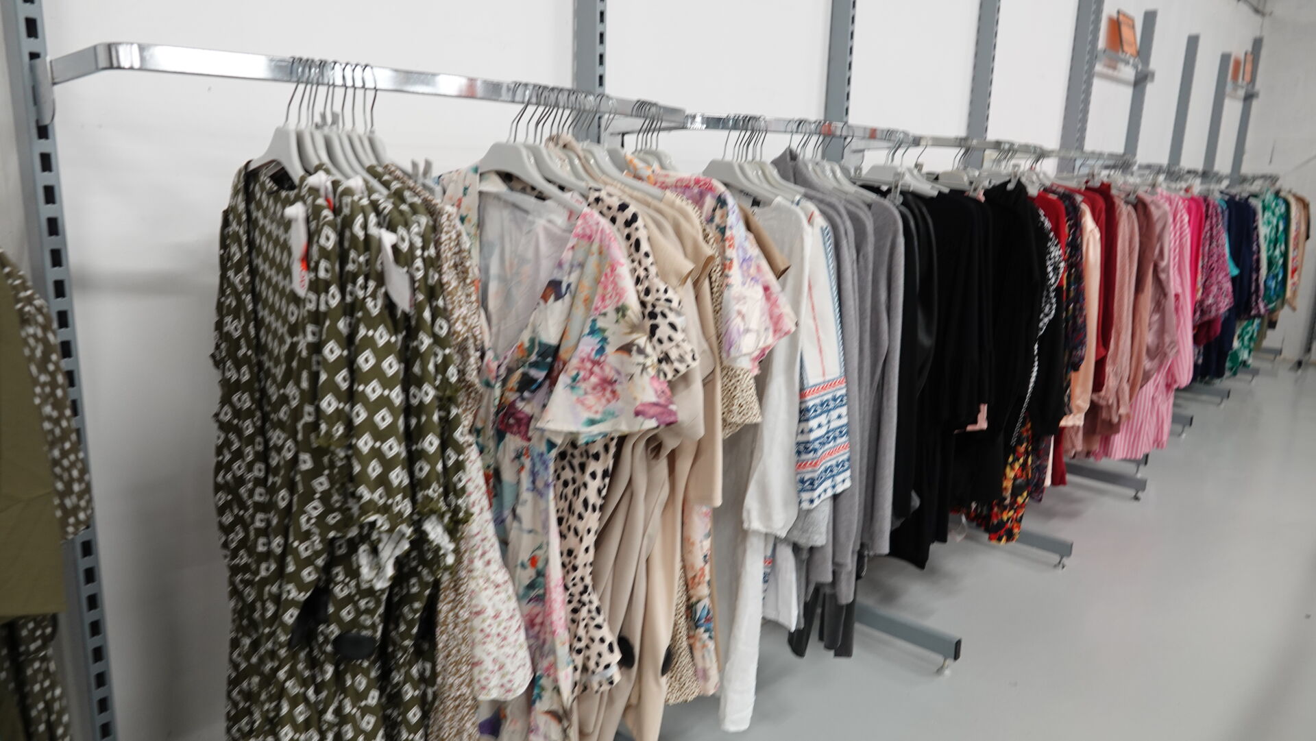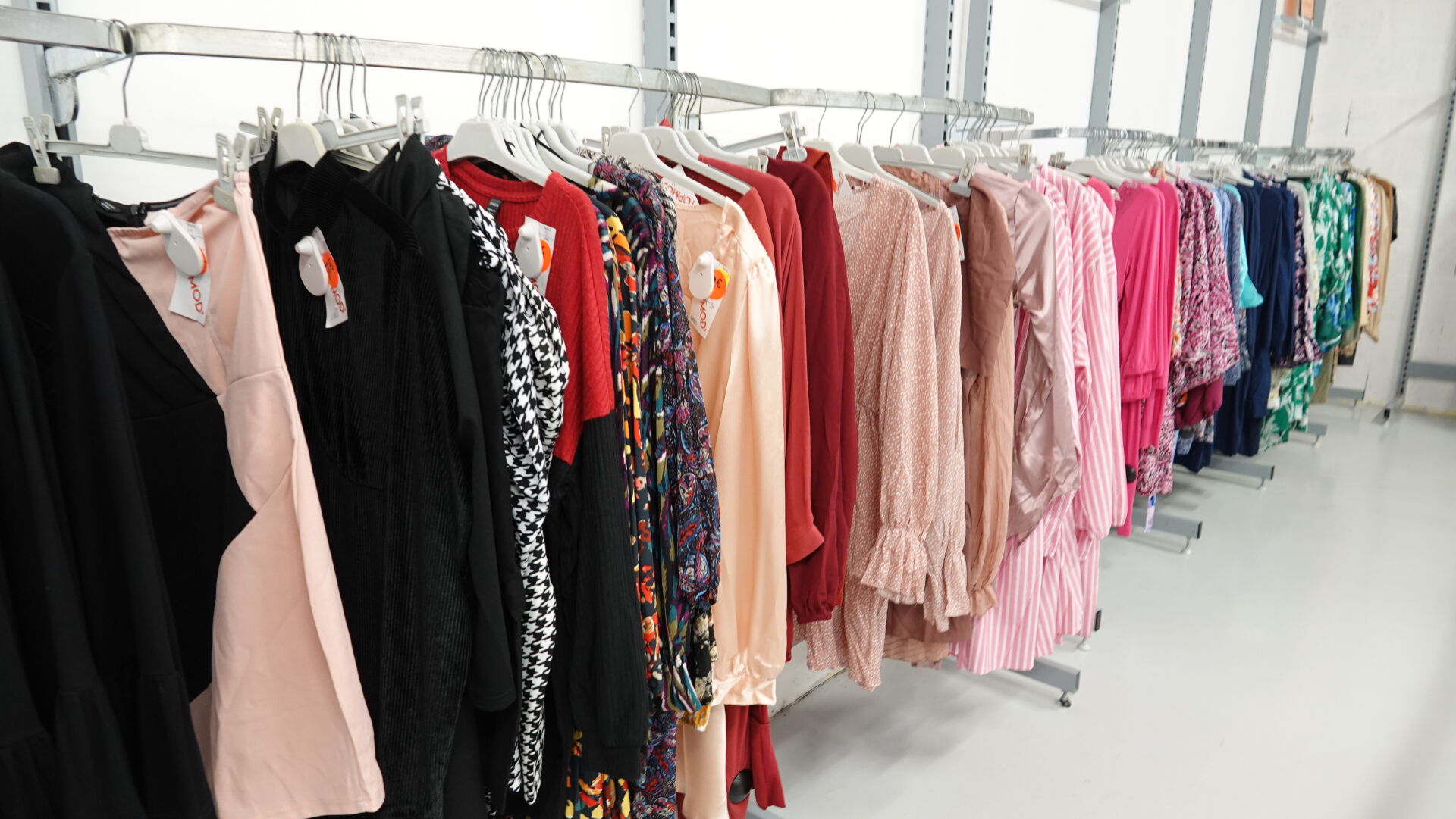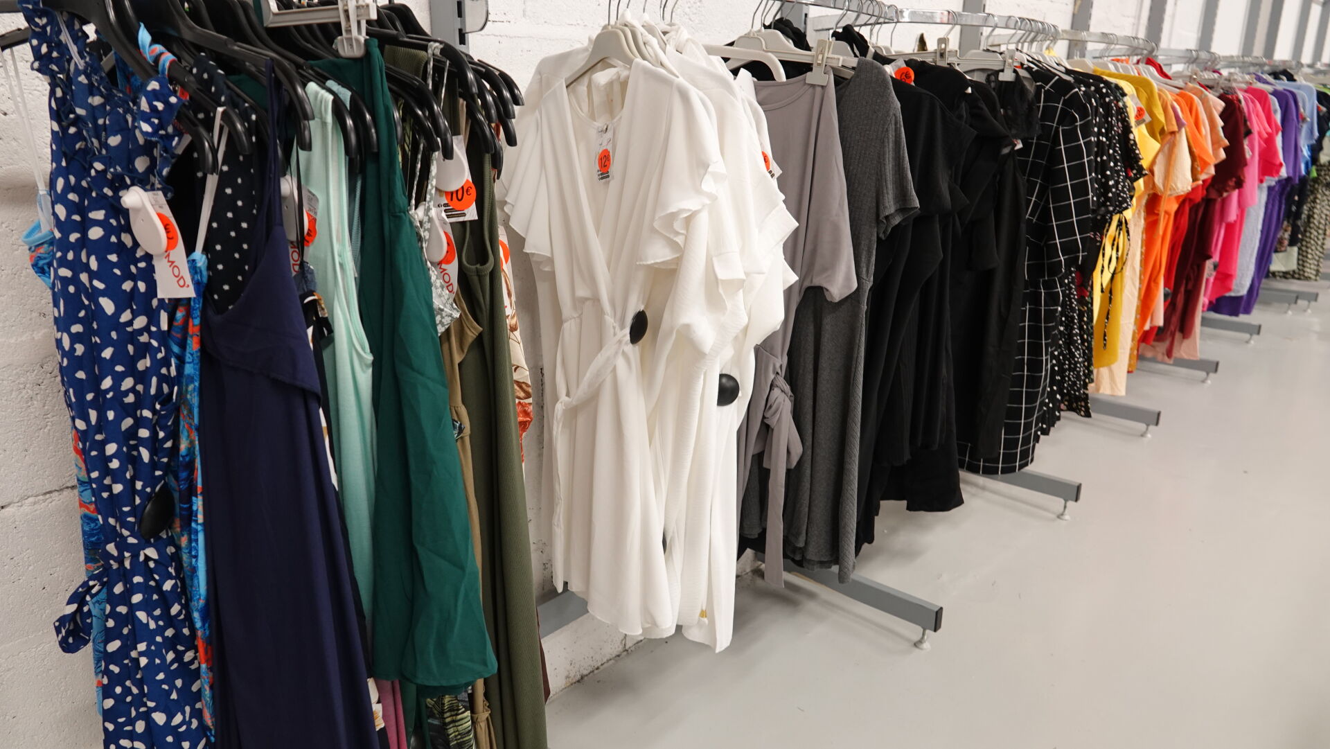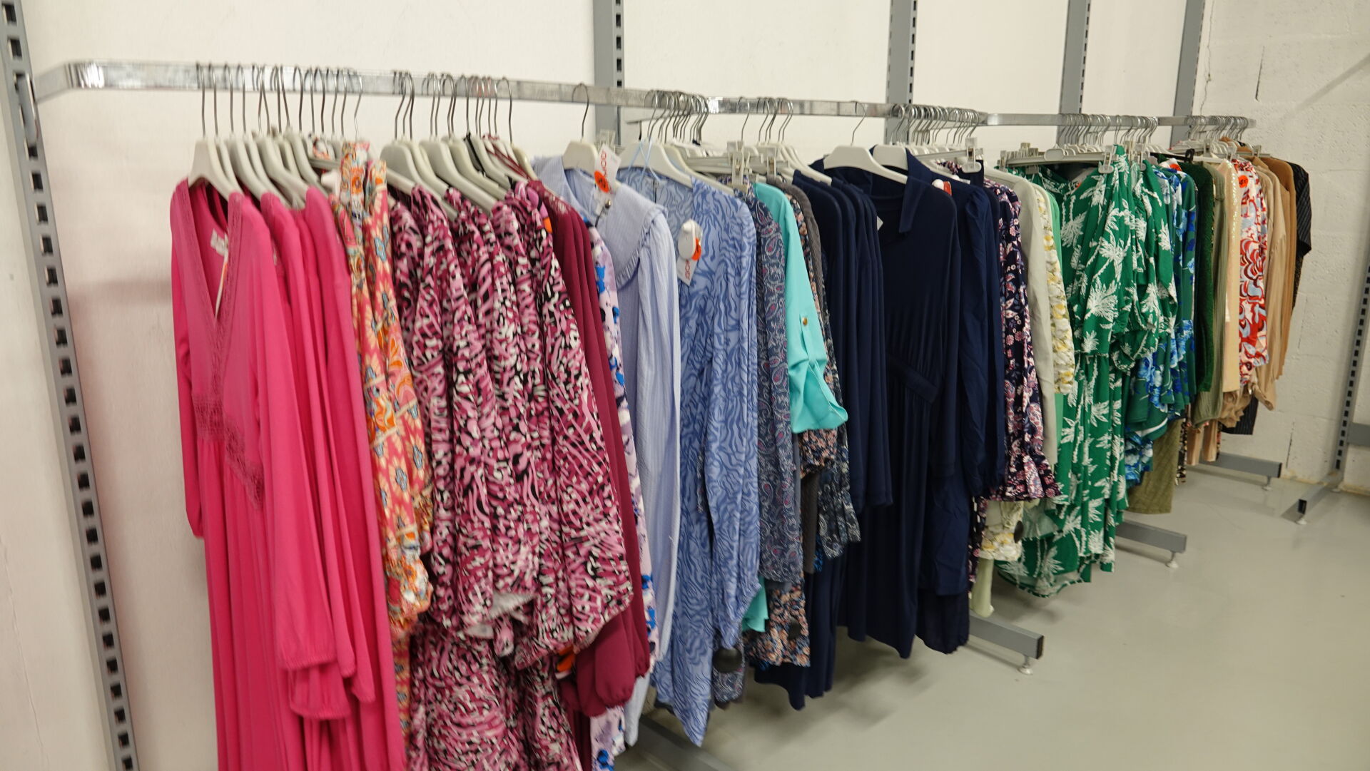 Ensemble d'environ 568 robes courtes, tuniques et pulls pour femme, tailles et coloris divers