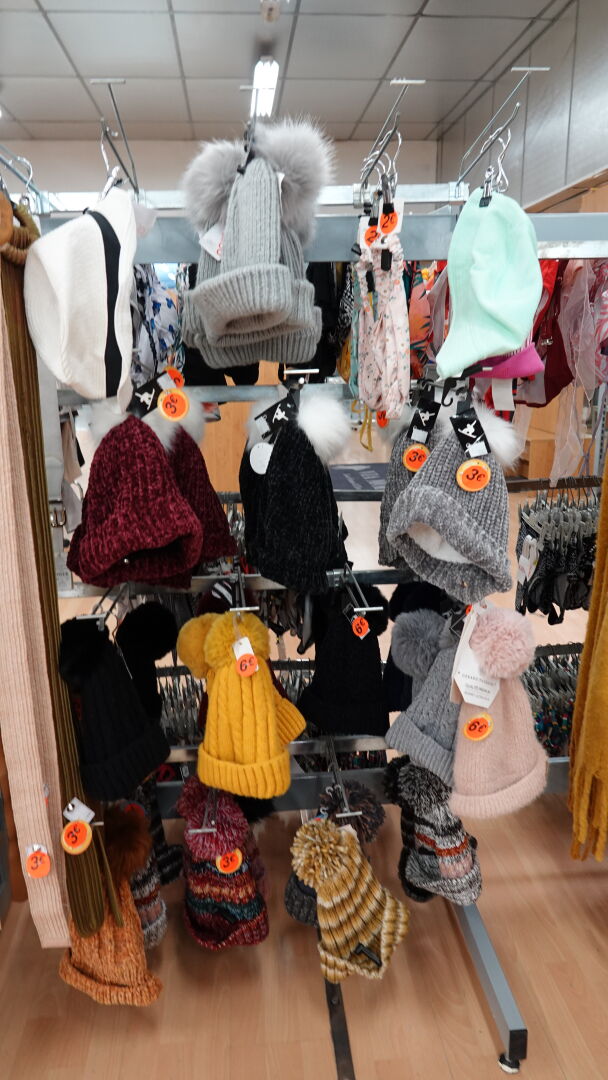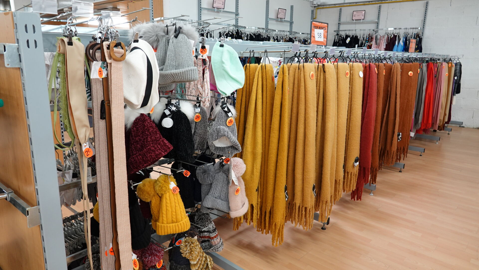 Stock d'écharpes, bonnets et ceintures, environ 110 pièces