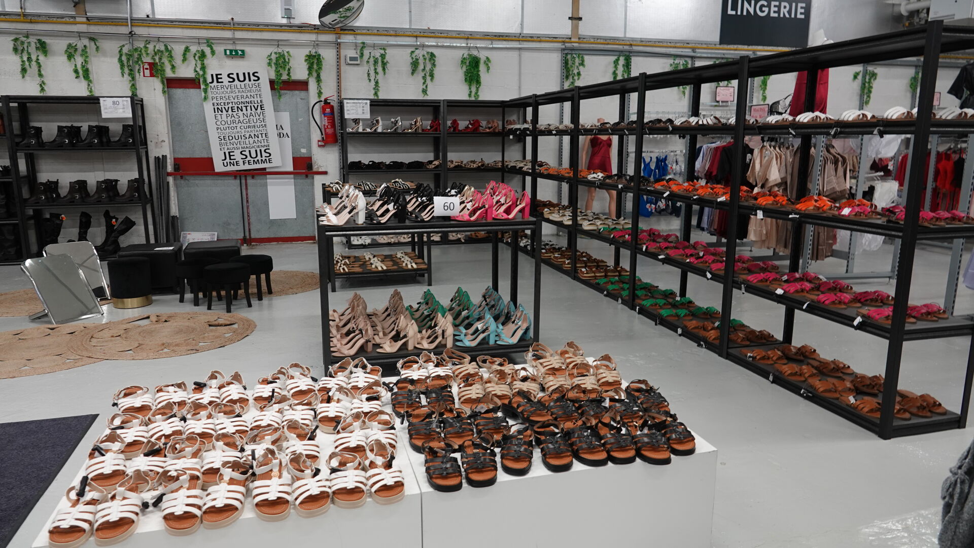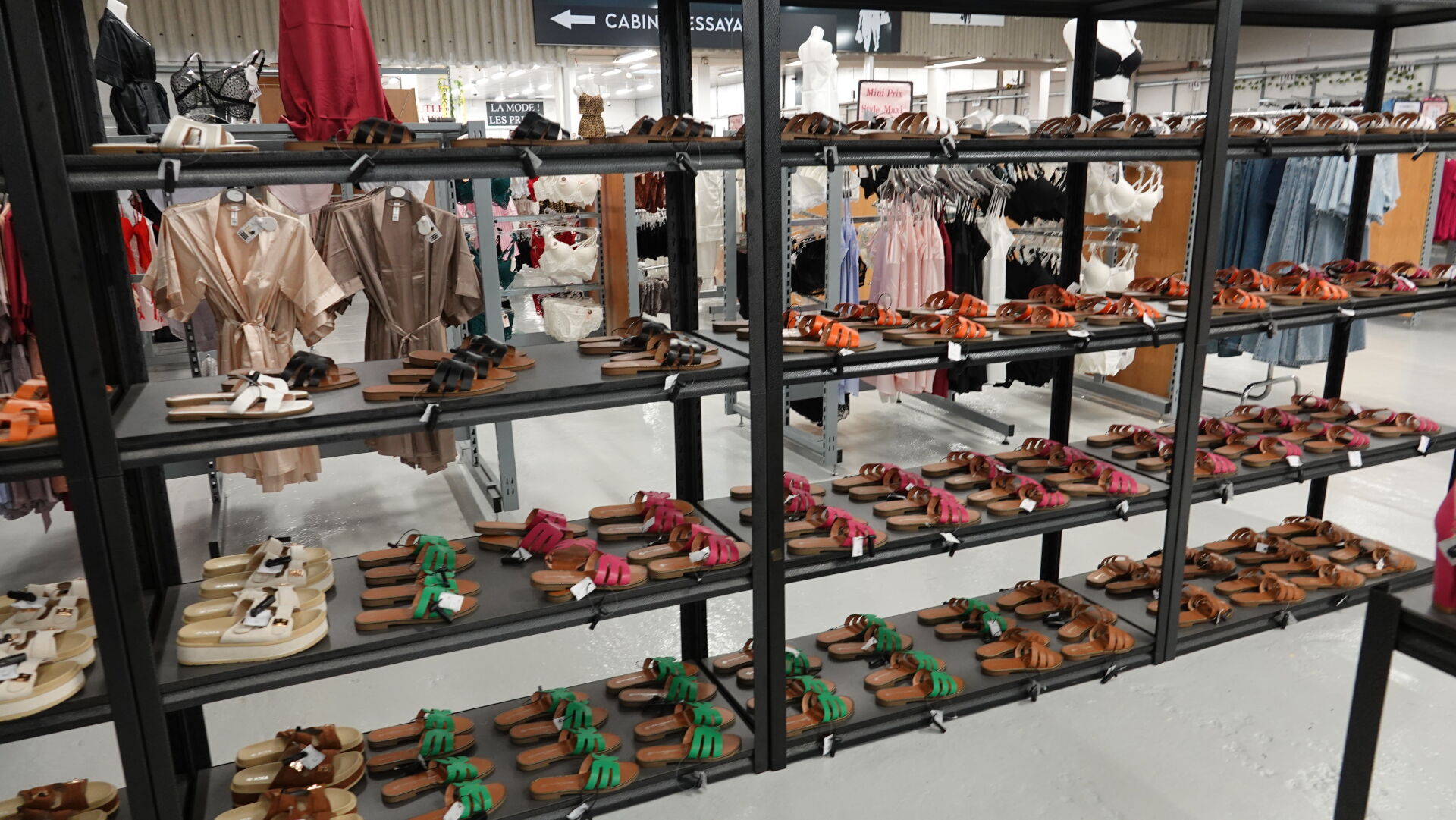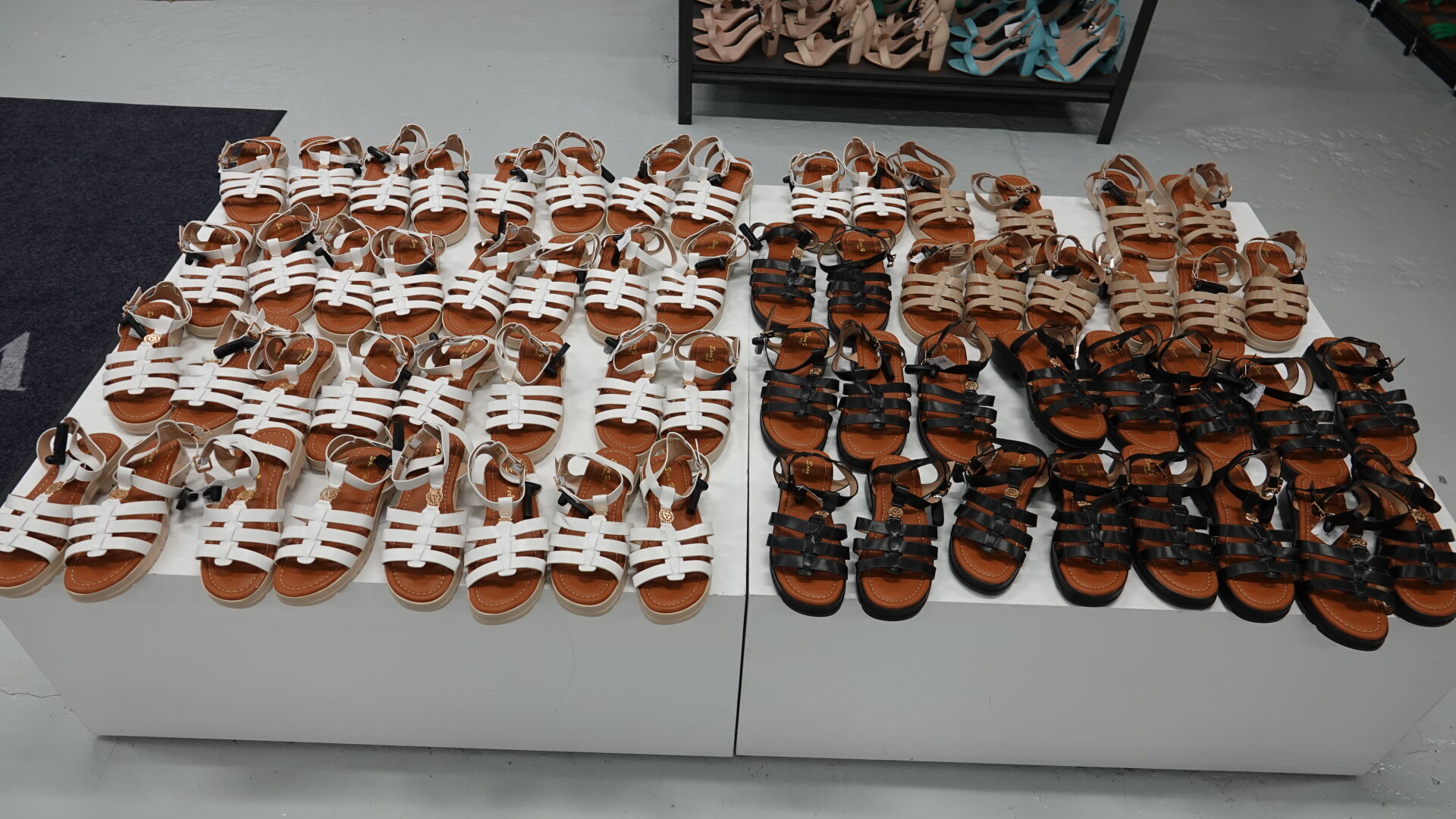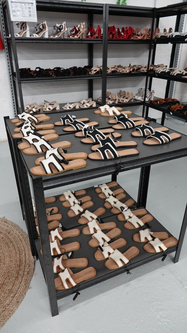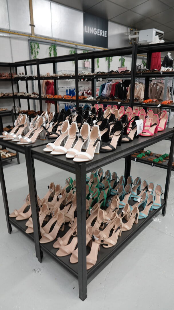Stock de sandales, chaussures ouvertes à talon, environ 328 paires, tailles et coloris divers