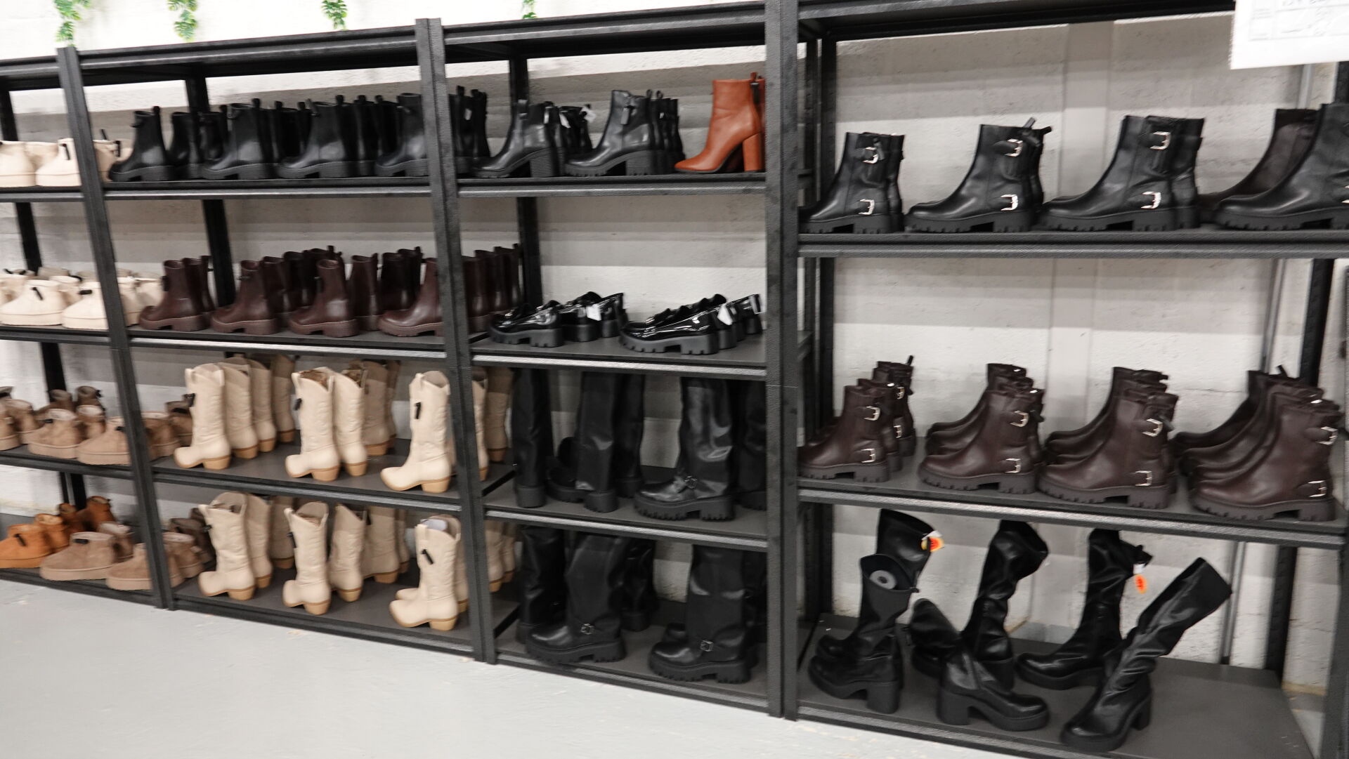 Stock de bottines, bottes, chaussures compensées et fourées, environ 296 paires, tailles et coloris divers
