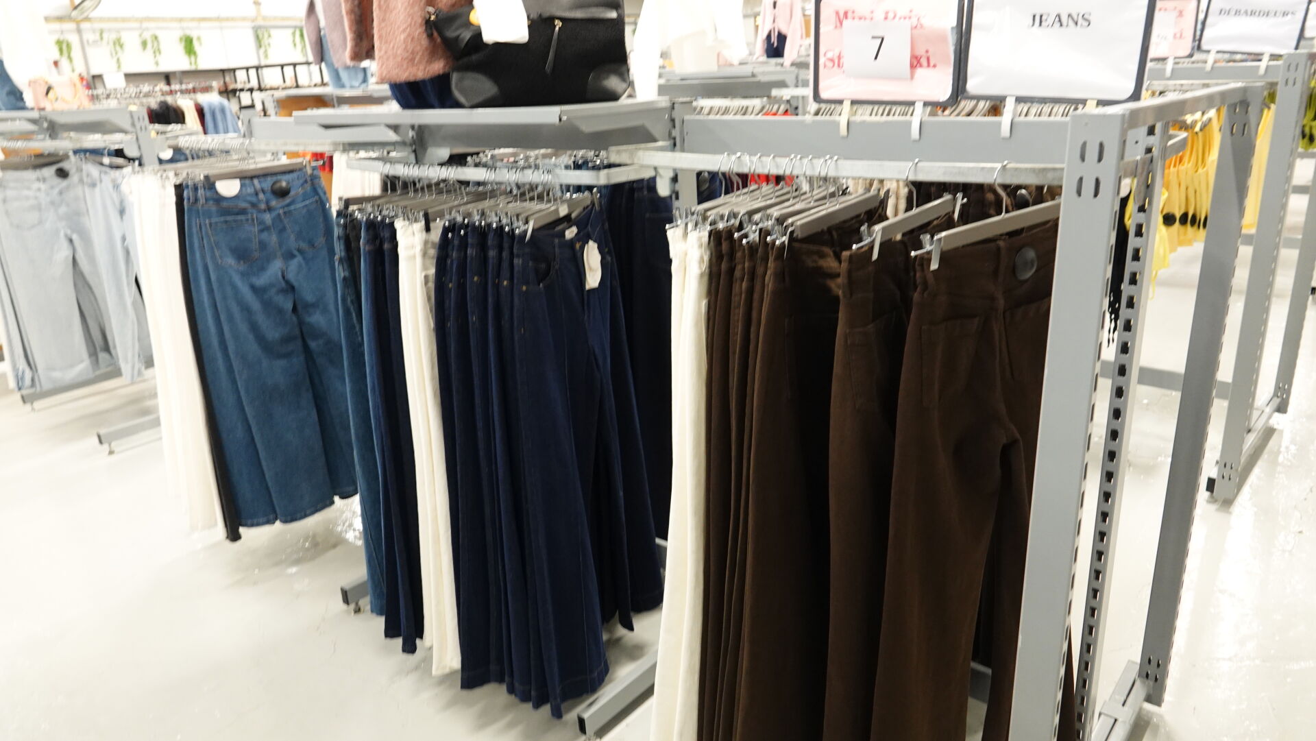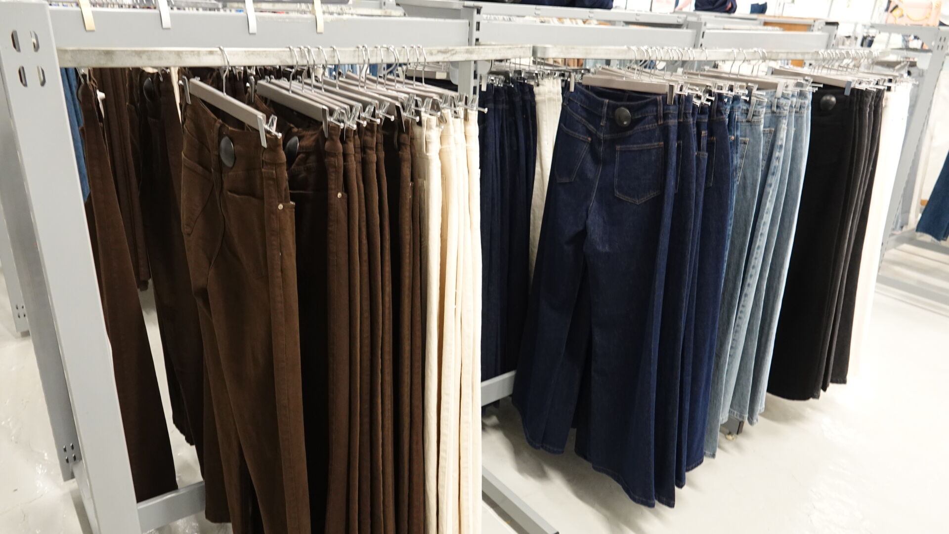 Ensemble d'environ 100 jeans pour femme, tailles et coloris divers (marque Oraje)