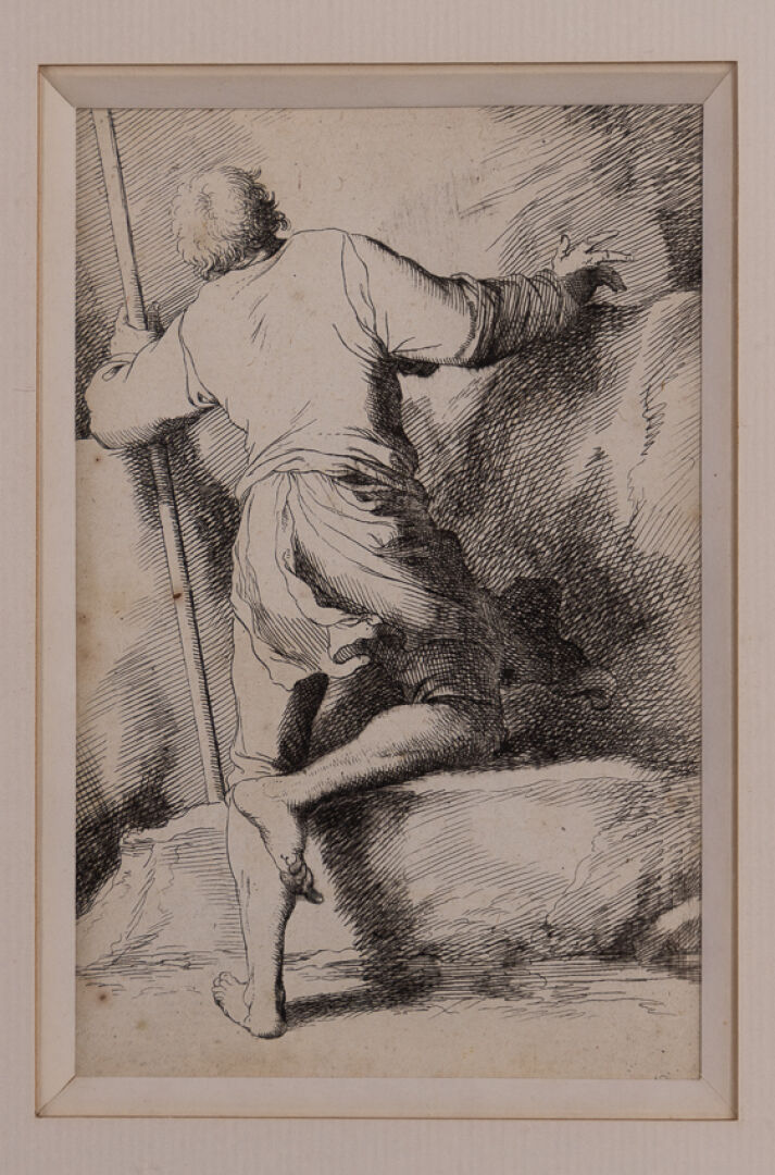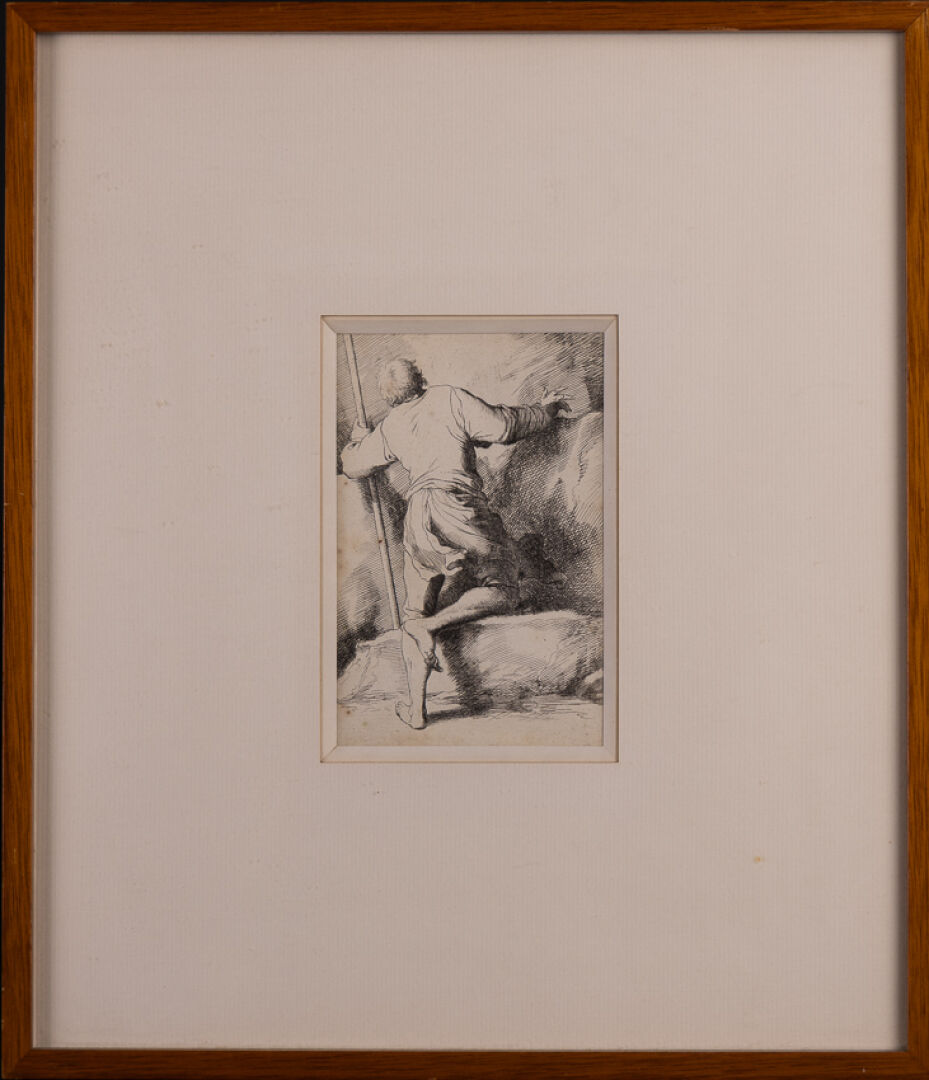 D'après Salvator ROSA (1615-1673). Homme au bâton au genou appuyé. Eau forte en noir. Dim. à vue : Haut. : 13 cm - Larg. : 8,5 cm