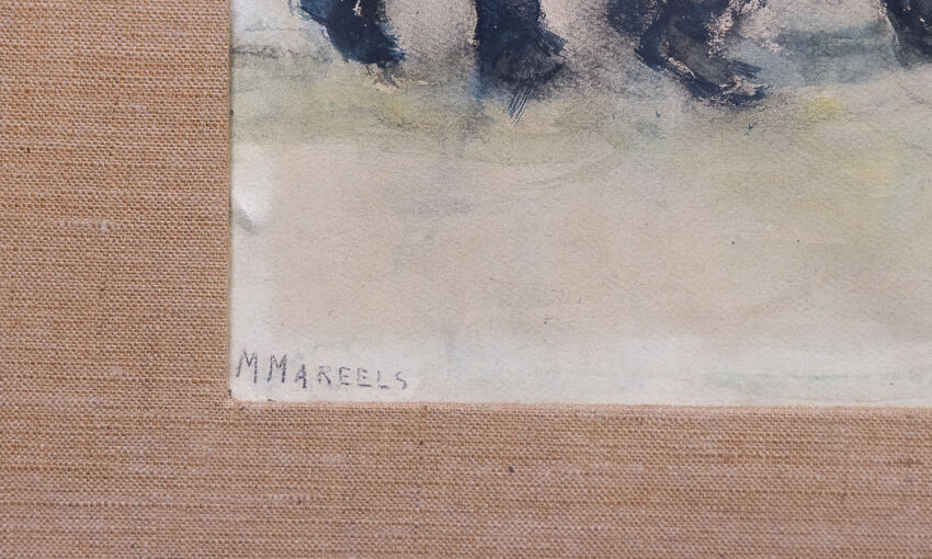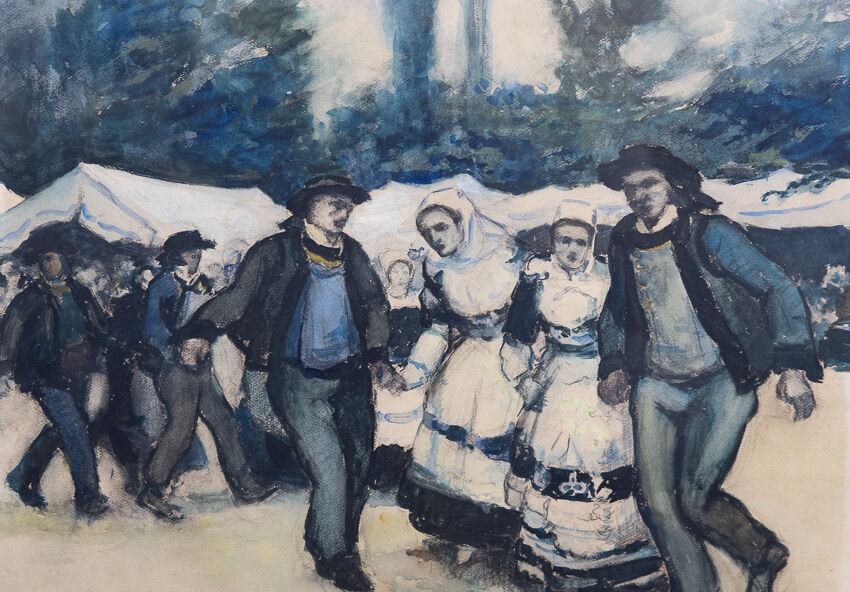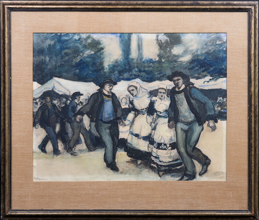 Maurice MAREELS (1893-1976). Danse bretonne. Aquarelle signée (insolation, petits accidents). Dim. à vue : Haut. : 46 cm - Larg. : 60 cm