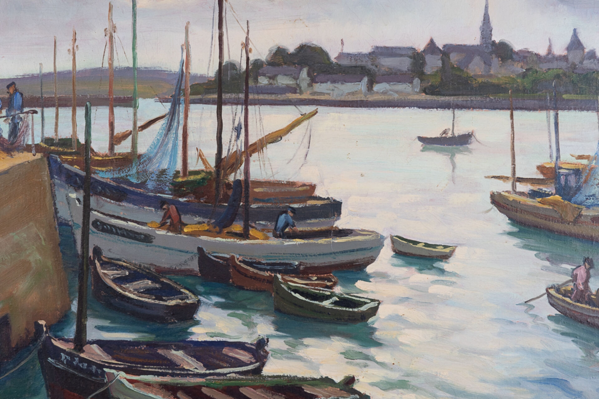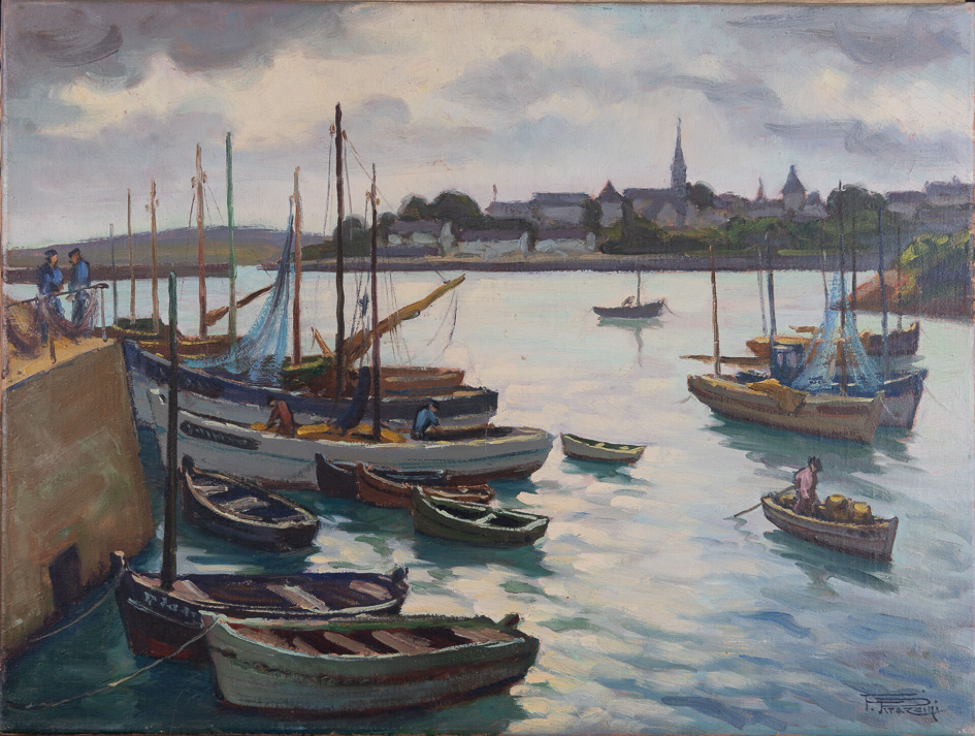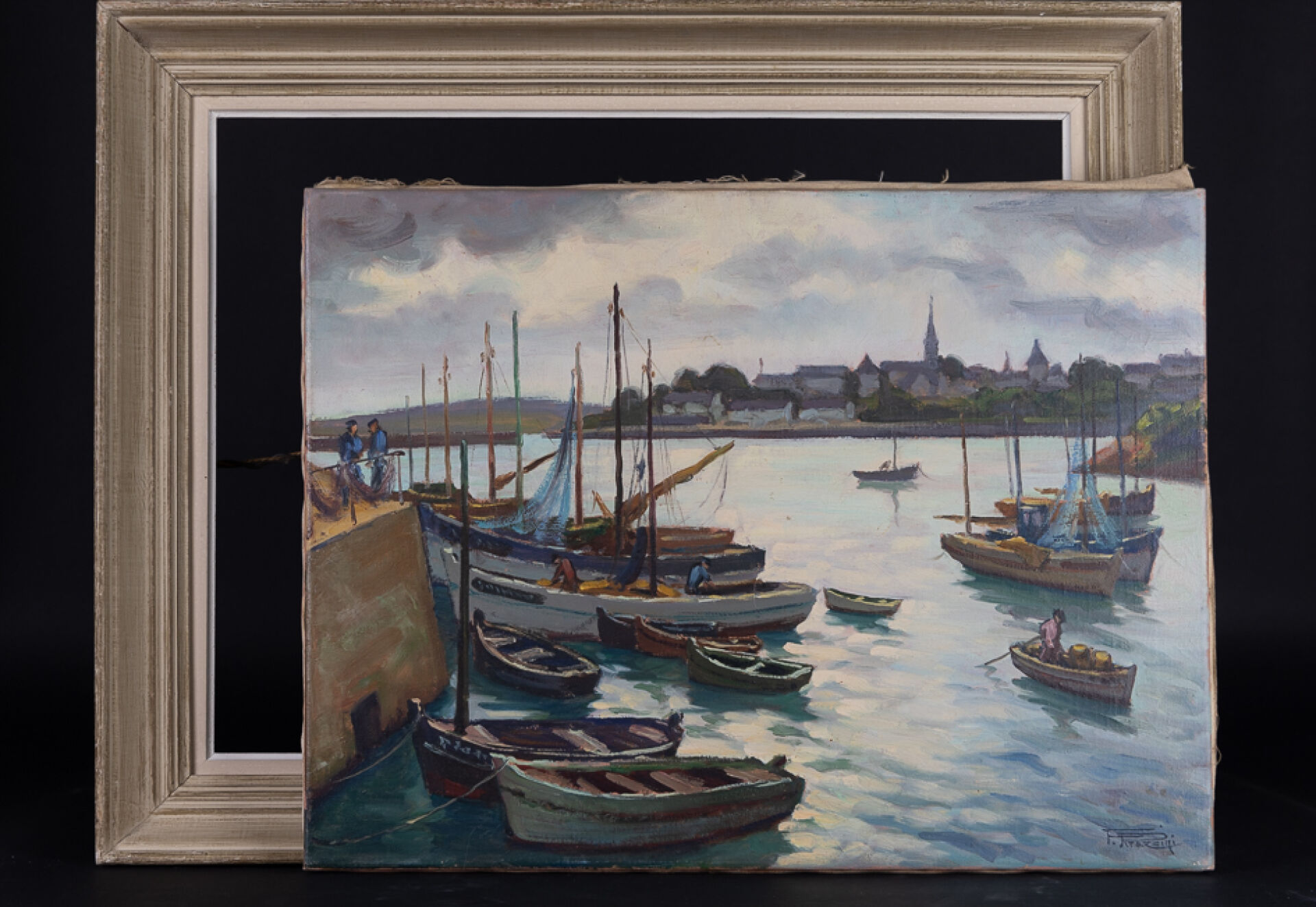 Fortuné PIRAZZINI (1907-2003). "Contre-jour à Treboul". Huile sur toile signée en bas à droite contresignée titrée et située au revers. Haut. : 46 cm - Larg. : 60 cm