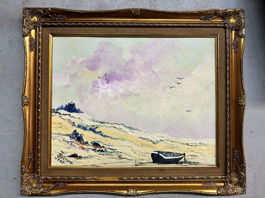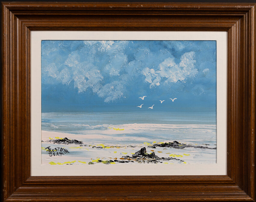 Jean JUSTUM (né en 1946). Ensemble de six oeuvres encadrées peintes figurant des paysages de bord de mer breton. Huile sur panneau et carton signées, datées, titrées. Dim. moyennes : Haut. : 20 à 42 cm - Larg. : 25 à 51cm