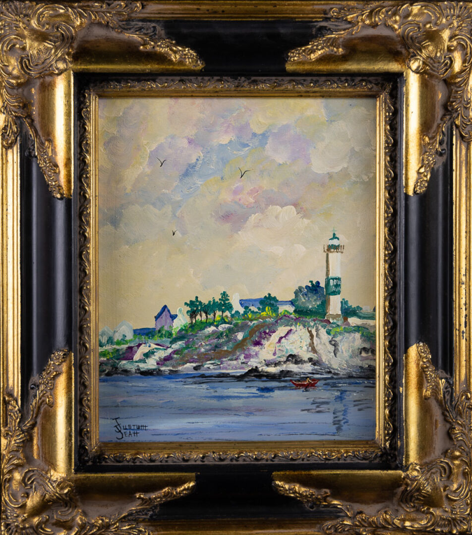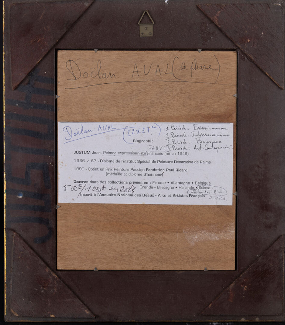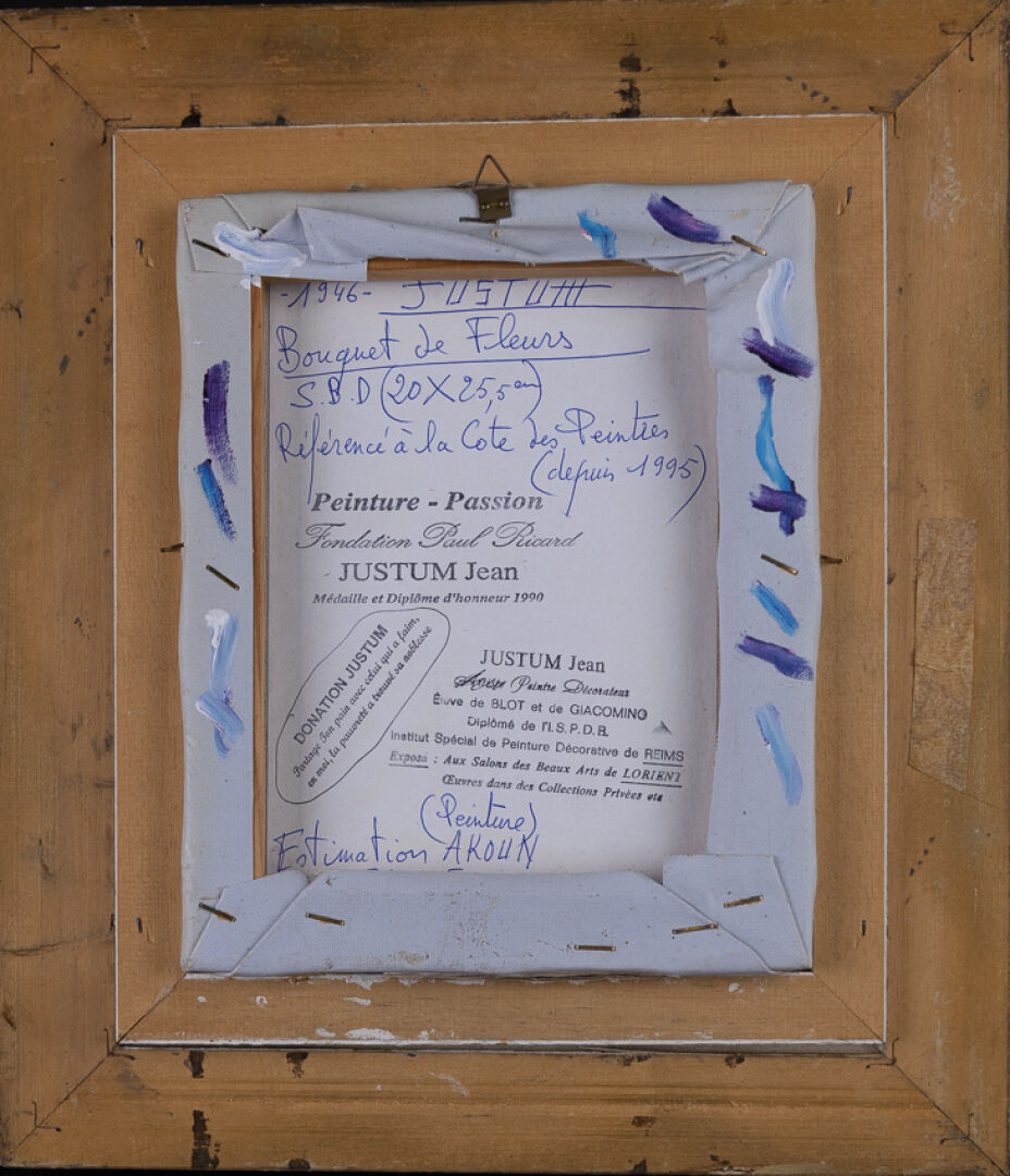 Jean JUSTUM (né en 1946). Six huiles sur panneau figurant principalement des paysages de bord de mer, paysage breton, bouquet de fleurs. Dim. moyennes : Haut. : 22cm - Larg. : 27 cm