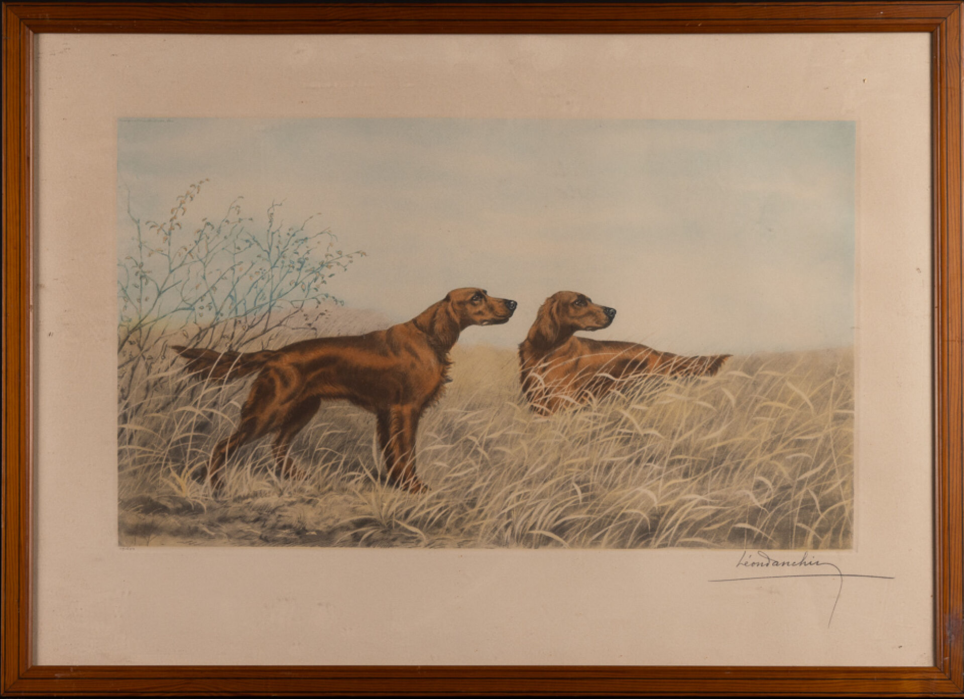 D'après Léon DANCHIN (1887-1938). Setters anglais nez au vent. Lithographie signée en bas à droite numérotée 119/500 en bas à gauche. Haut. : 32.5 cm - Larg. : 55 cm