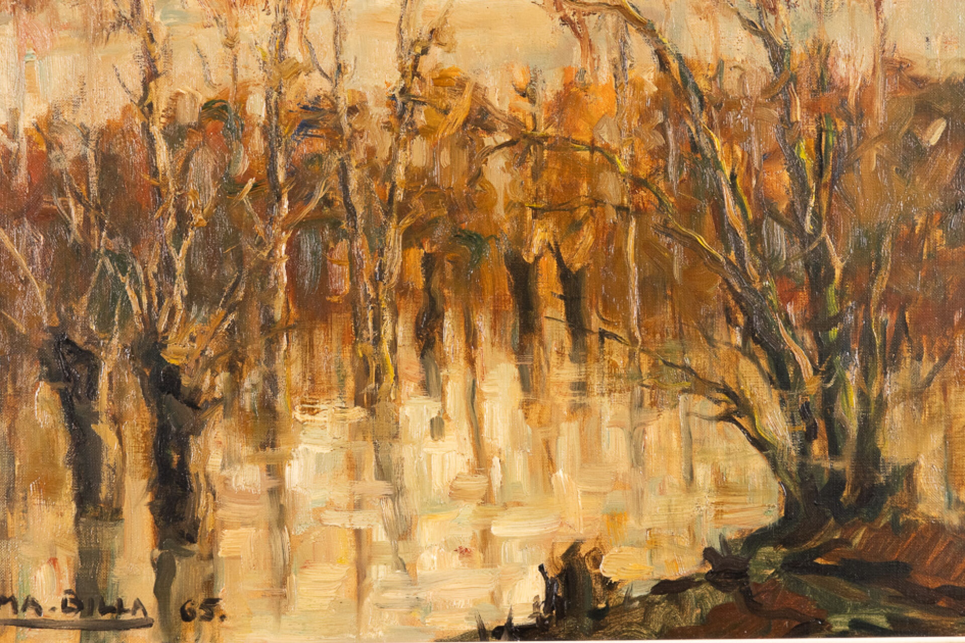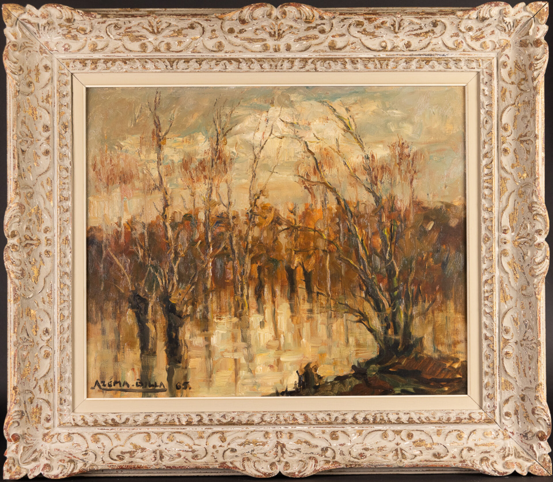 Marcel AZEMA-BILLA (1904-1999). Inondation aux arbres Huile sur toile signée et datée 65 en bas à gauche Haut.: 50 cm - Larg.: 61 cm