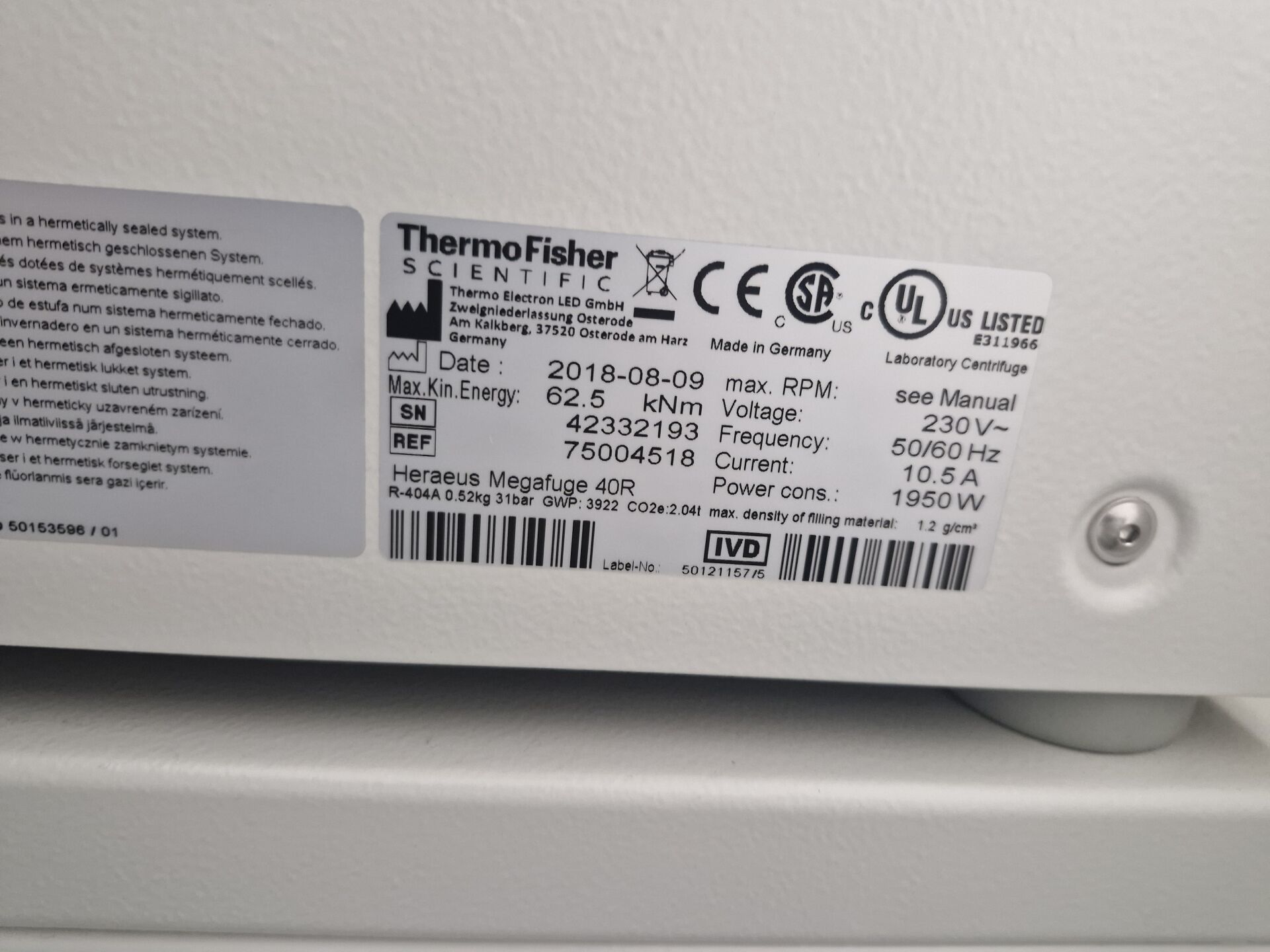 1 centrifugeuse THERMO SCIENTIFIC Megafuge 40R + accessoires(S/N 42332193)