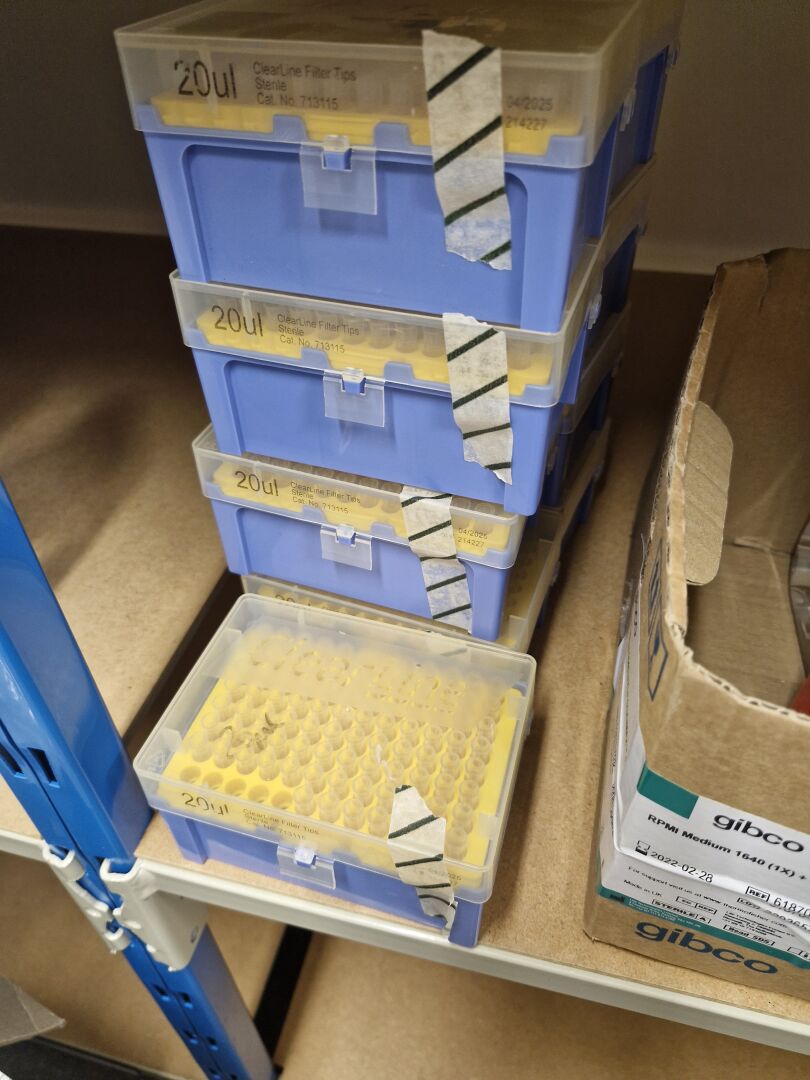 1 lot d'accessoires et consommables de chimie 1 lot de produits chimiques : 1 bidon Ethanol 70 % 5 L, 3 tampons DPBS GIBCO 500 ml, 1 tryple E Express GIBCO 100 ml