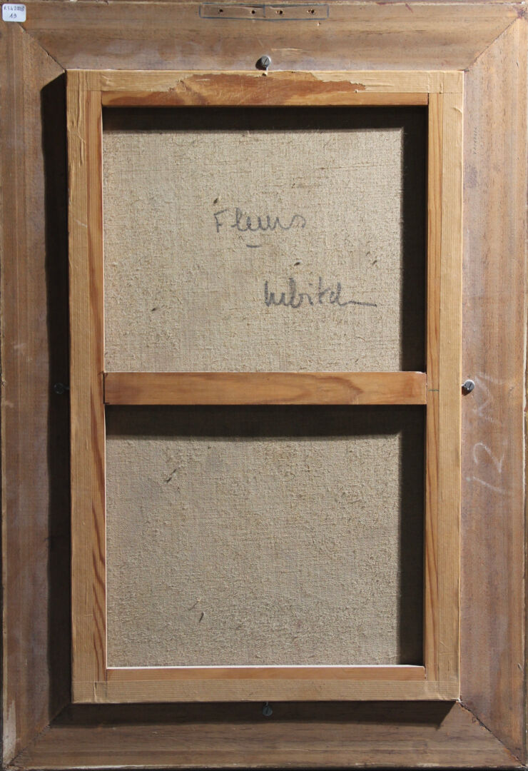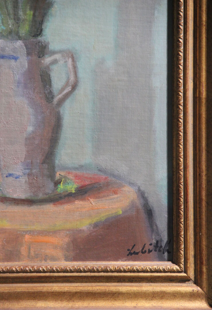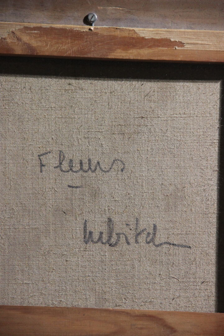 Ossip LUBITCH (1896-1990). "Fleurs" - Nature morte aux fleurs sauvages sur un fond vert. Huile sur toile signée en bas à droite et titrée et contre signée au revers. Haut. : 61 cm - Larg. : 38 cm