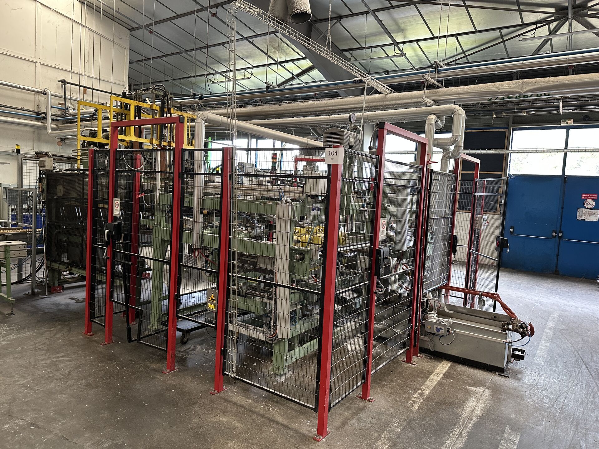 Vendu sur désignation le 04 11 2025 à 10h à NANTES, 24 rue du marché commun, visible le 03/11/2025 de 14h à 16h à GETIGNé, Enlèvement jusqu'au 19 décembre 2025 HALL 3 (partie de la chaine de production) : -2 rouleaux à poudre diam 2000 mm longueur 3000 mm dont 1 hors service ( dans un espace cloisonné bois à démonter) -2 bacs à bain d'huile de pulvérisation 600 L -1 trémis de stockage diam 1500 mm hauteur 1600 mm avec système anti-colmatage alimentant : -1 extrudeuse conique HERRHAMMER HSF 900 de 2010 moteur PARKER type PV140R 2400 rpm, avec pose de mèche, et pupitre de commande HKP 900/40 de 2010 -1 module de rognage 2 moteurs KHF/KHSF -30/5 -1 module SPKD-25/50 avec grilles de protection 300 x 420 cm -1 module de trempage KH TM/1430/191 de 1987 -1 convoyeur à crans HERRHAMMER VPA007 4000 mm + 1 convoyeur à chaine environ 5000 mm avec armoire de commande (frais de mise à disposition 150 € TTC)