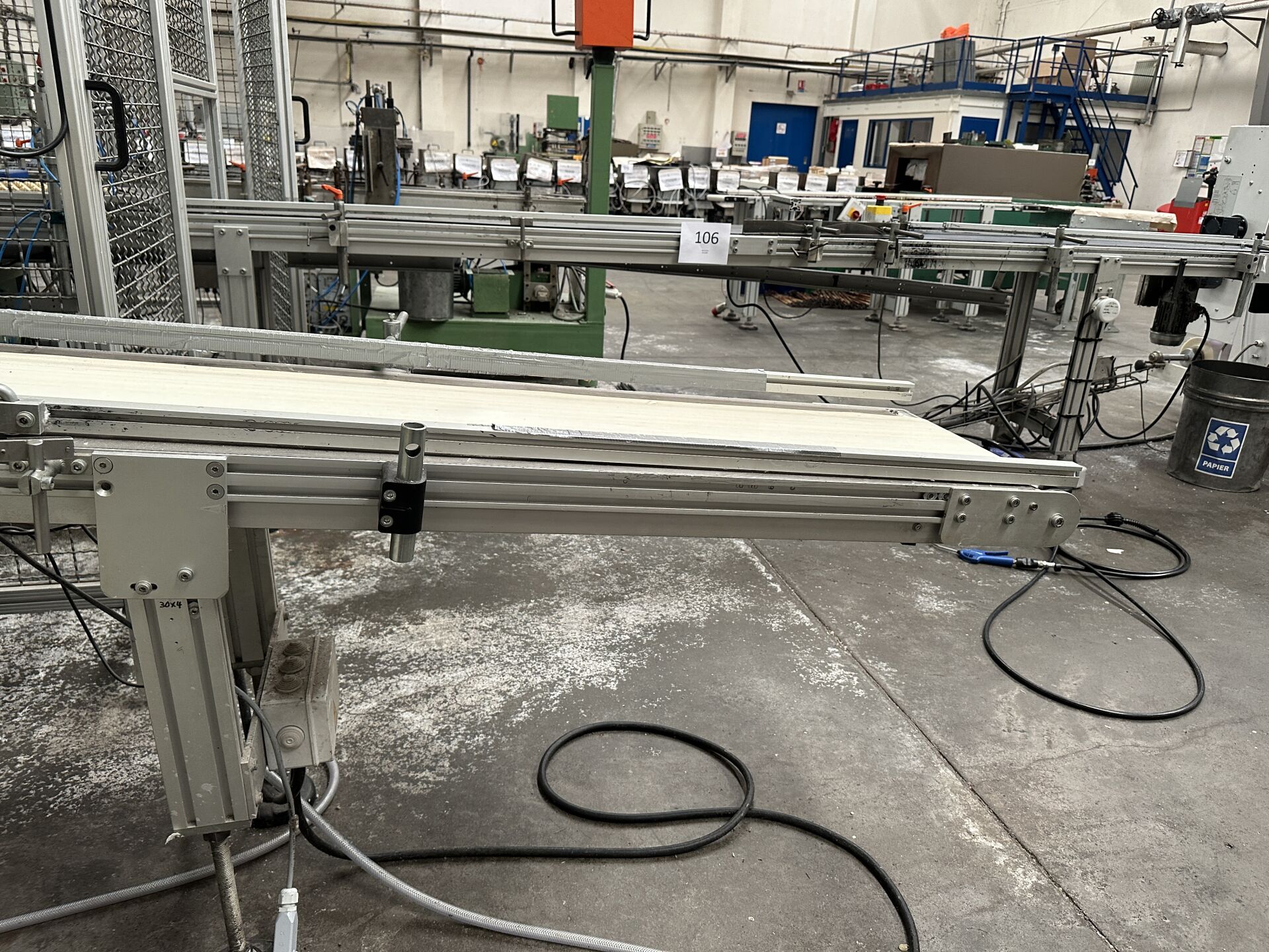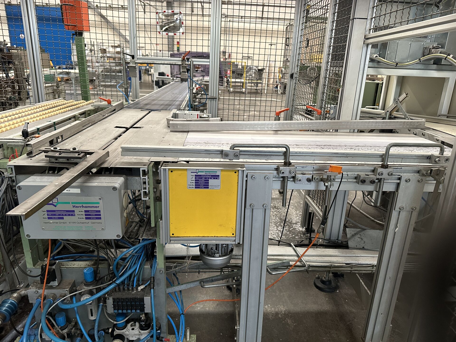 -1 convoyeur à bandes 4200 x 40 mm -1 poste de chargement HERRHAMMER de 2002 1 convoyeur à bande 110 x 55 cm 1 convoyeur à bande incliné 350 x 40 cm (frais de mise à disposition 10 € TTC)