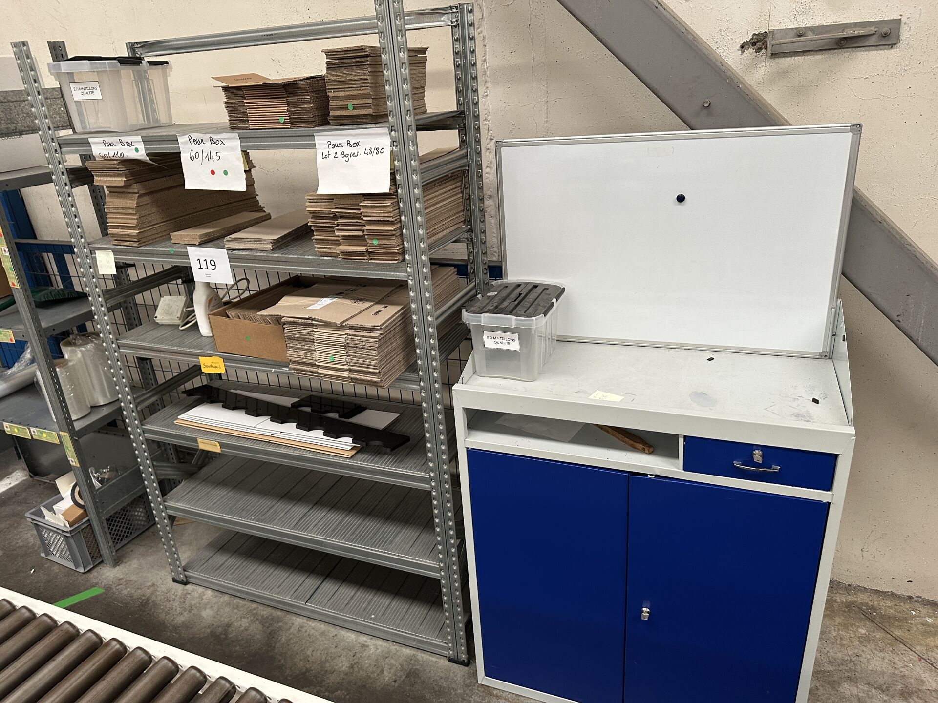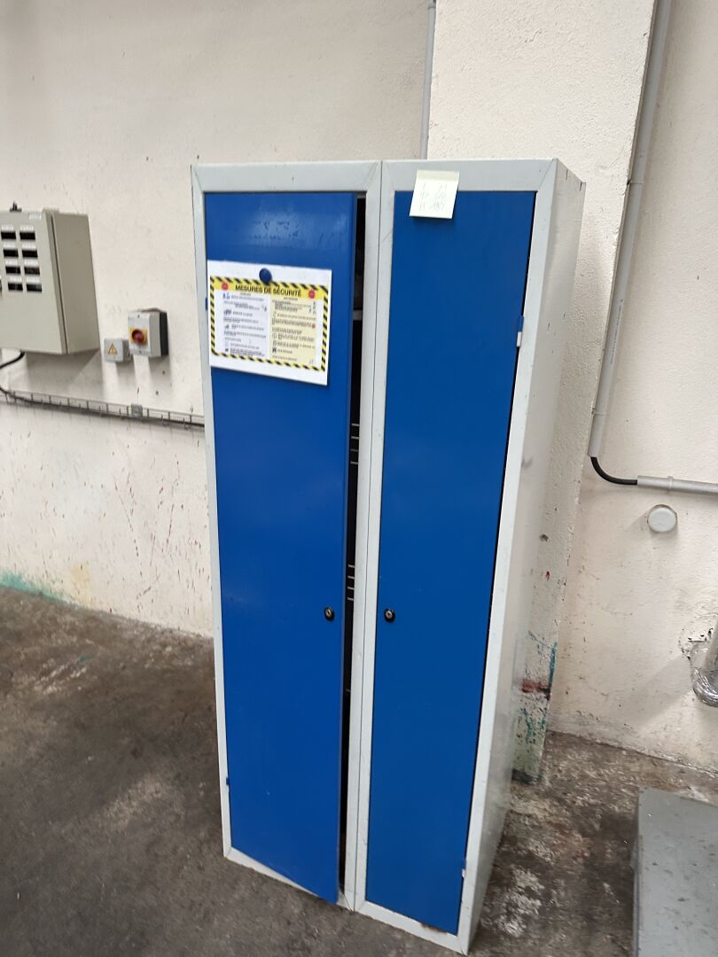 1 pupitre métal bleu et gris 2 étagères galva (188 x 40x 197 et 107 x 43 x 200 cm) avec contenu de cartons et film étirable 3 armoires métal gris et bleu 2 portes (71 x 50 x 180 cm) 1 armoire métal gris 2 portes (120 x 45 x 198 cm) (frais de mise à disposition 10 € TTC)
