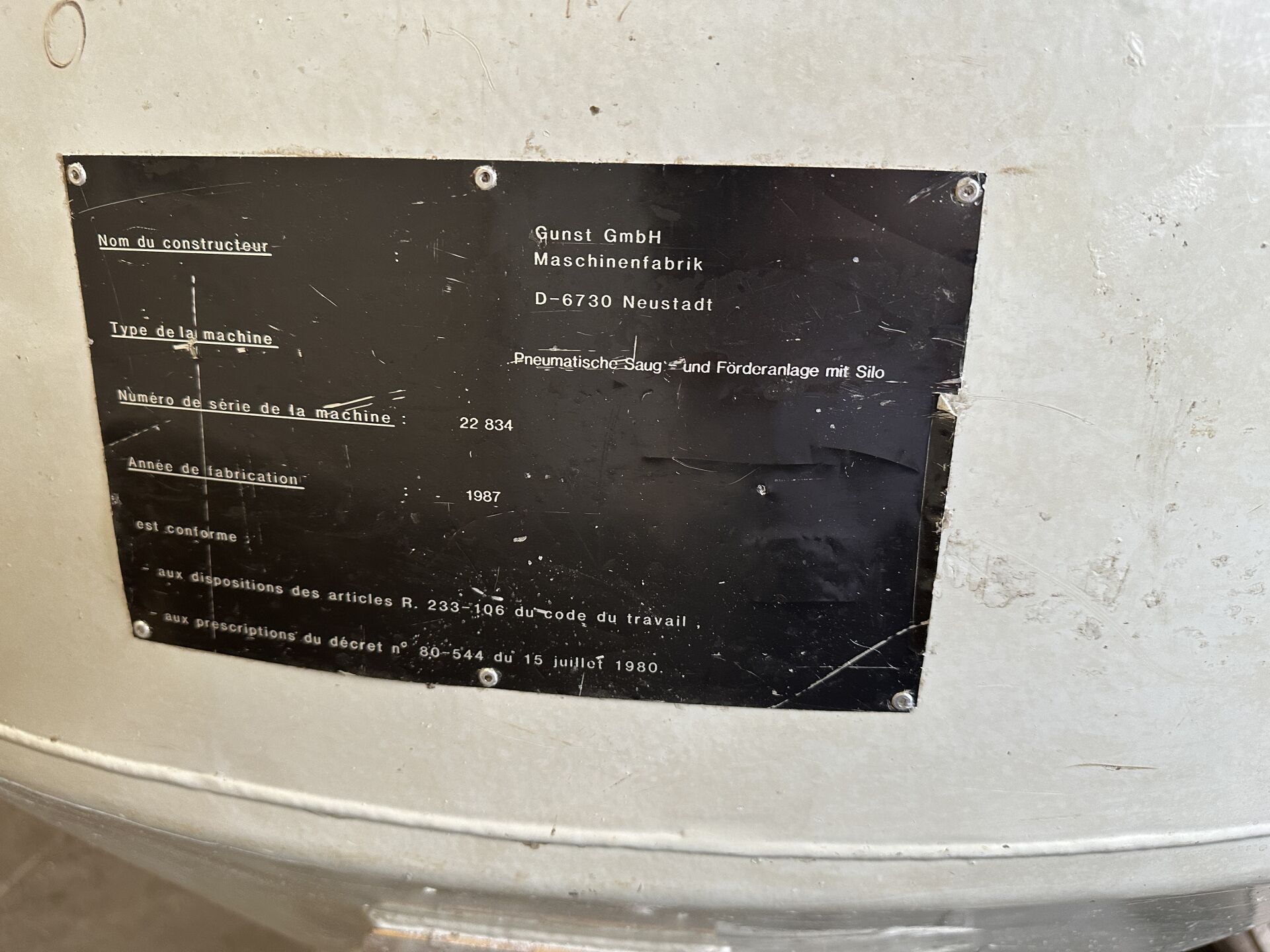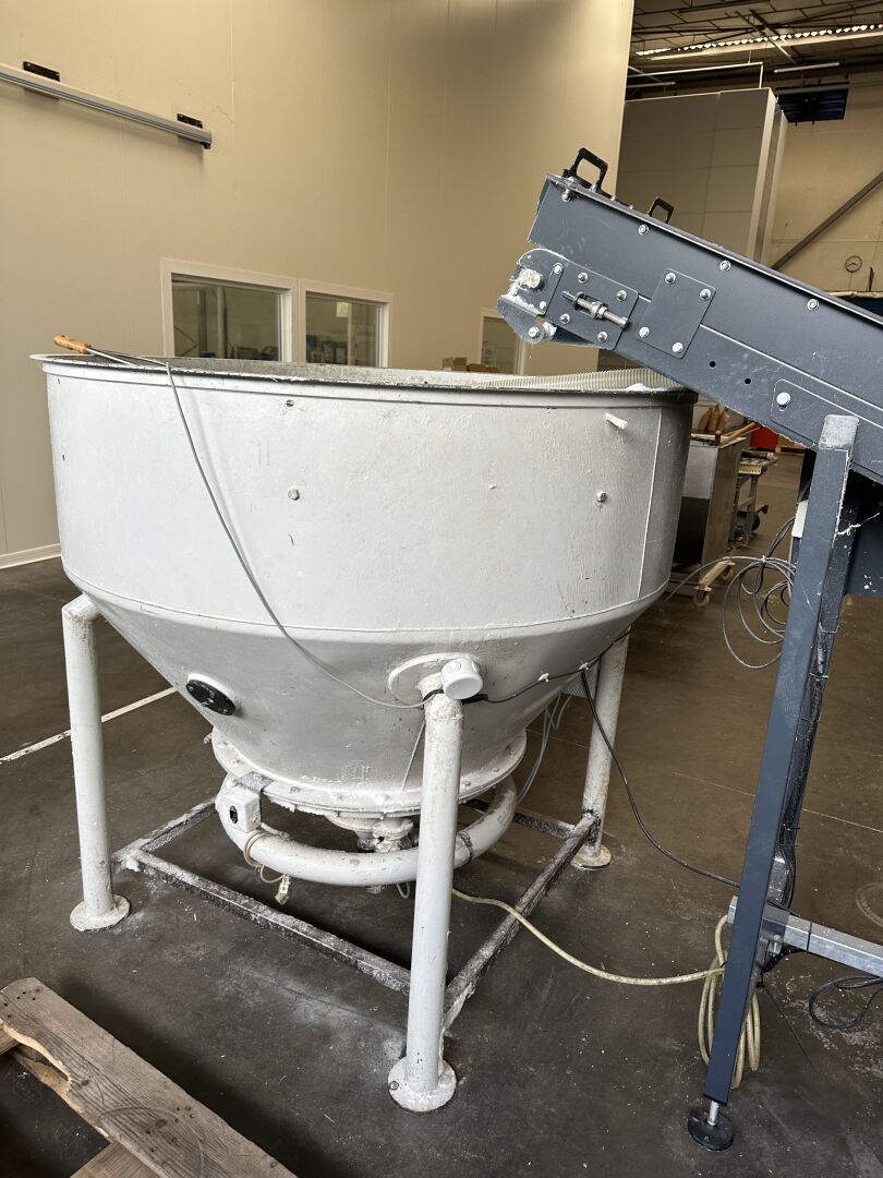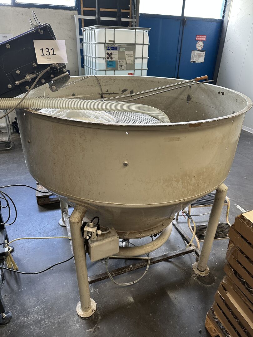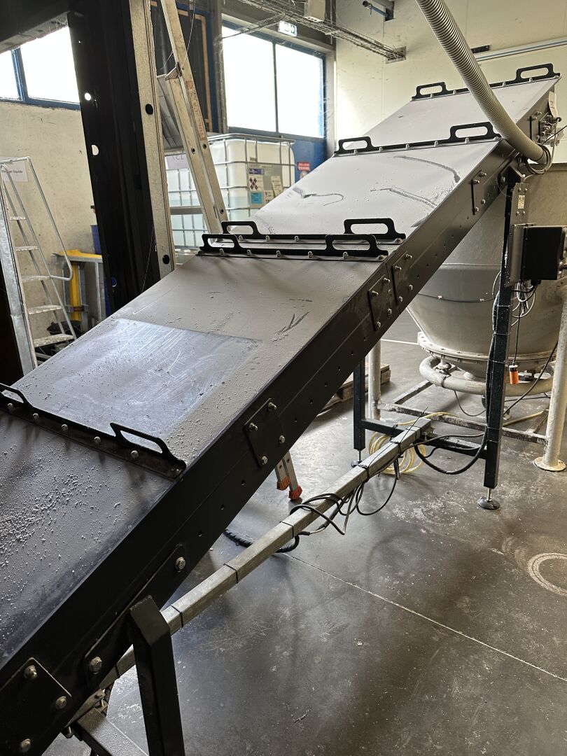 HALL 4 - FACULTE DE REUNION - ENCHERES PROVISOIRES (partie de la chaine de production de "bougies ménage" HERRHAMMER) : -1 convoyeur à bande longueur 3500 mm longueur 700 mm à capot, incliné -1 trémie diamètre 1500 mm hauteur 1600 mm avec un système anti-colmatage (frais de mise à disposition 50 € TTC)