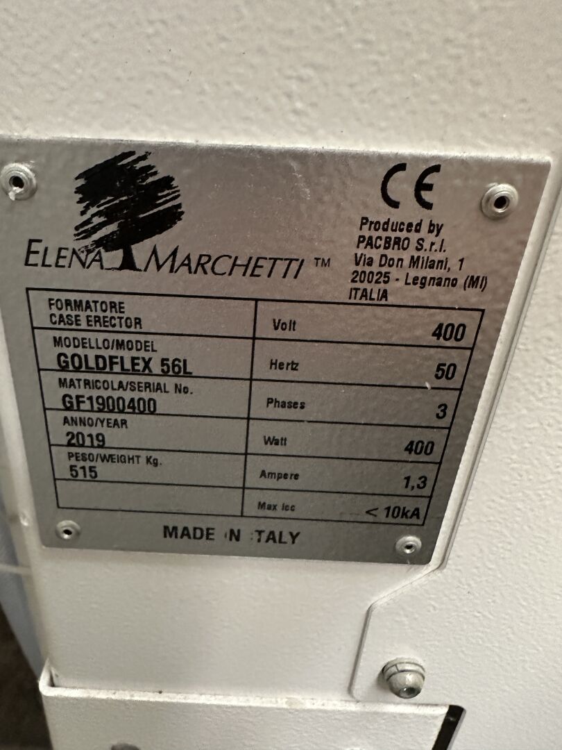 HALL 4 - FACULTE DE REUNION - ENCHERES PROVISOIRES (partie de la chaine de production de "bougies ménage" HERRHAMMER) : -1 formeuse de caisse ELENA MARCHETTI GOLDFLEX 56l de 2019 No GF1900400, cage vitrée 155 x 220 cm