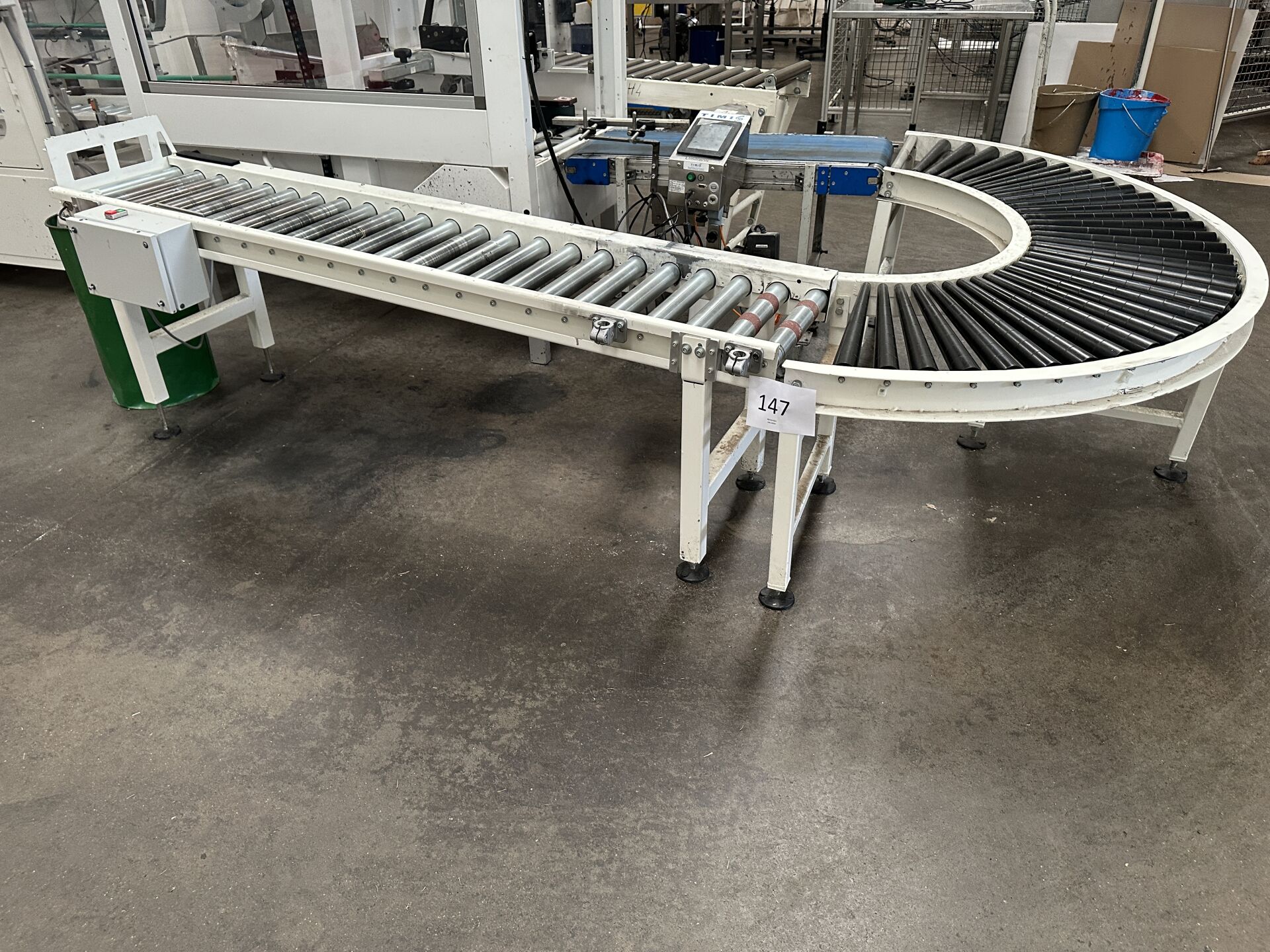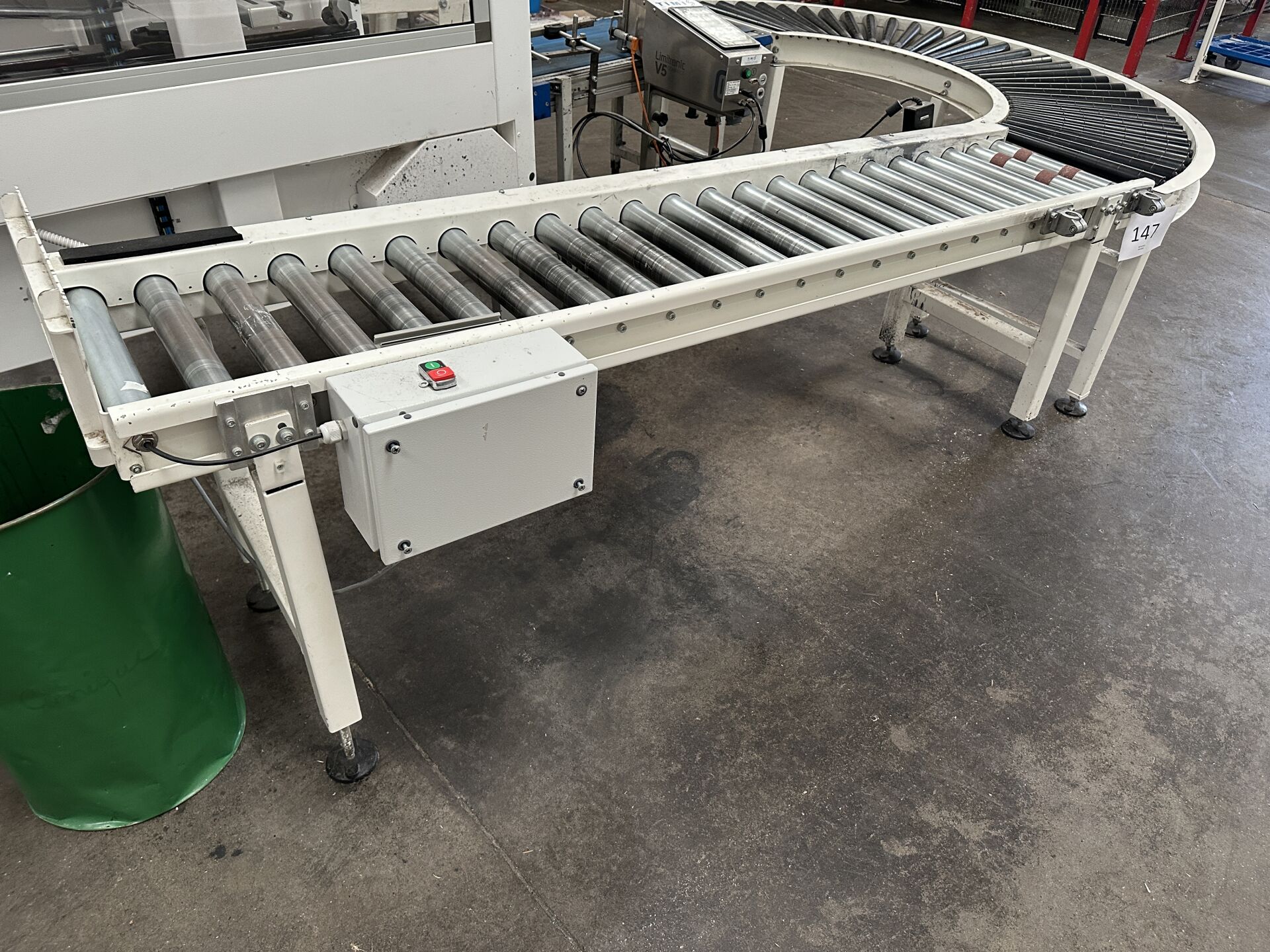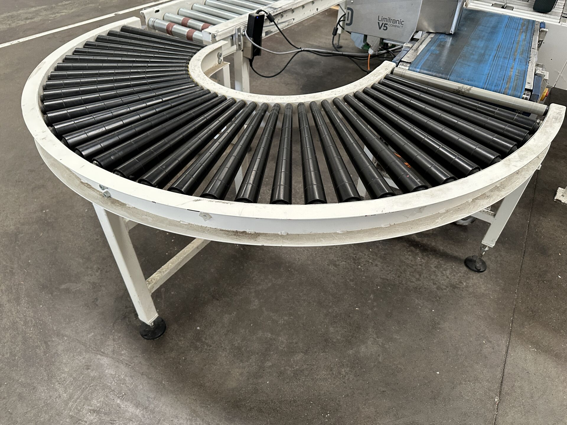 -1 convoyeur à rouleaux courbe longueur 1500 mm largeur 500 mm -1 convoyeur à rouleaux motorisé droit longueur 2000 mm largeur 400 mm (frais de mise à disposition 10 € TTC)
