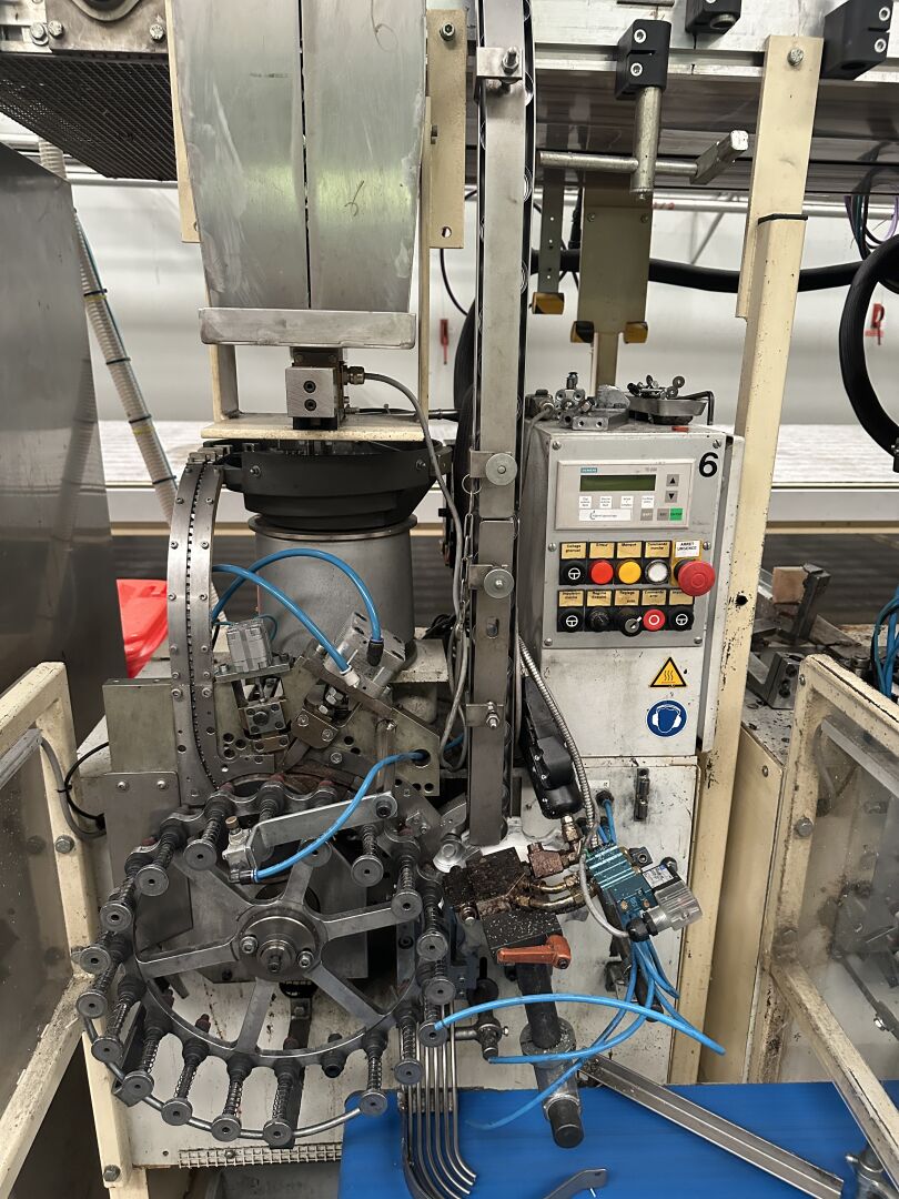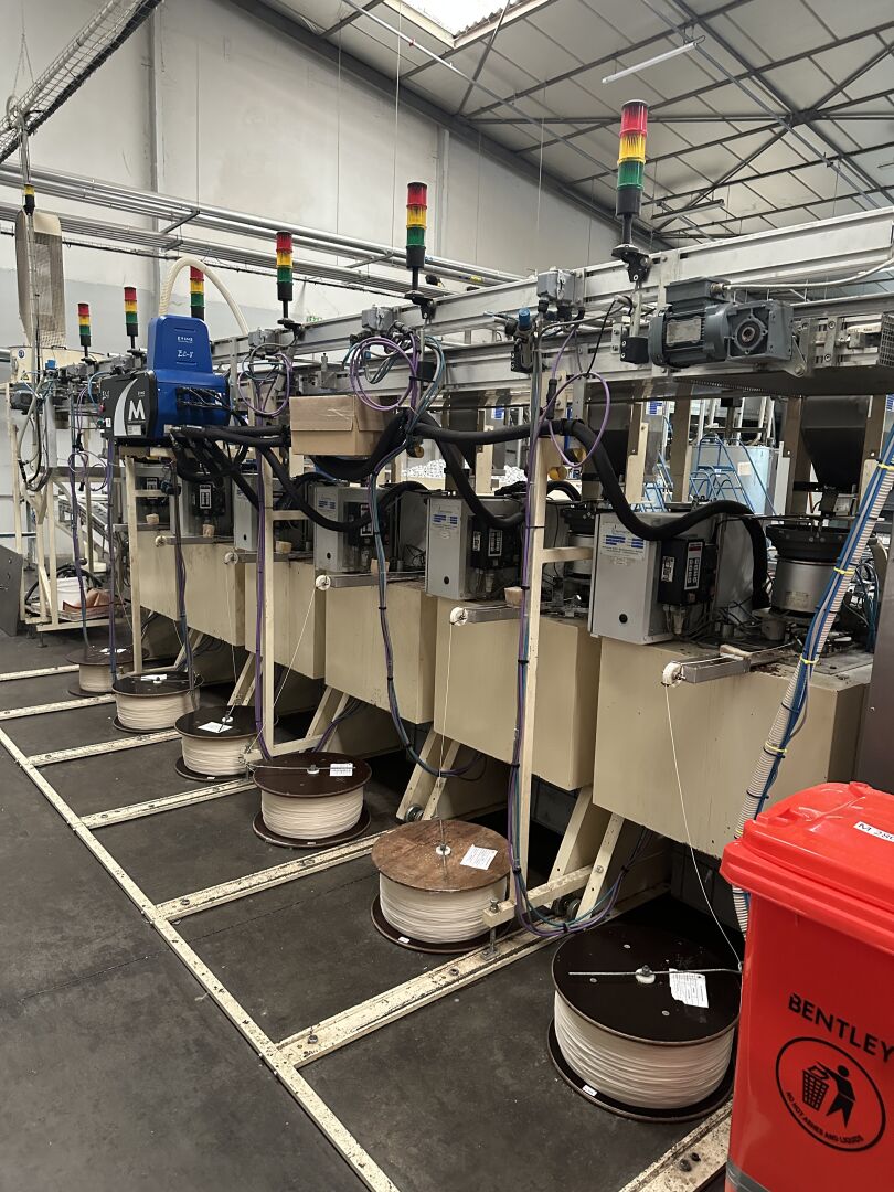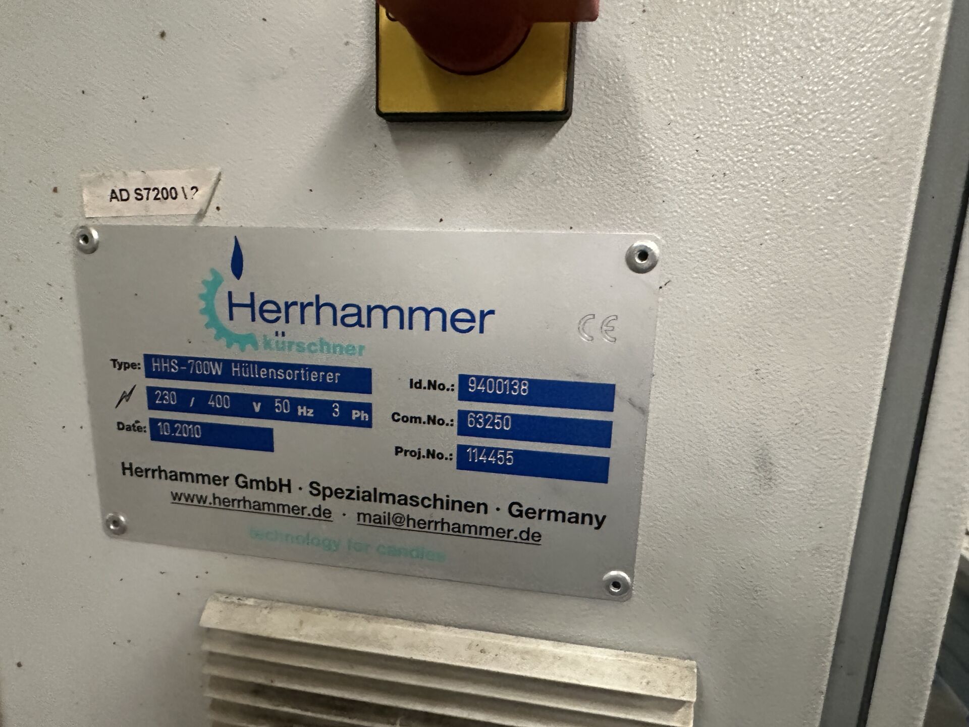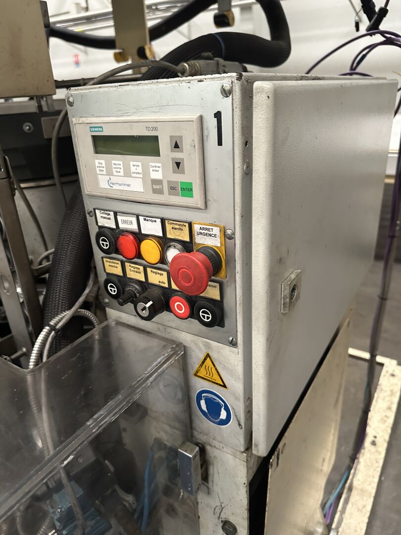 CP2 - FACULTE DE REUNION - ENCHERES PROVISOIRES (partie de la ligne de production de chauffe-plats blancs HERRHAMMER) : -1 tapis convoyeur 2 bandes 6000 mm x 600 mm -6 systèmes de dépose de mèches EHML 45/25-20, 10 000 godets/heure, de 2010 -1 système de collage à chaud VALCOMELTON EC-8 du 19/07/2021 avec bac de stockage + système d'aspiration -1 tapis de convoyage bas 6000 x 400 mm ABZUGSBAND de 2010 -1 coffret de commande HHS-700 W HULLENSORTIERER de 2010 et 1 étagère avec matériel d'entretien (frais de mise à disposition 300 € TTC)