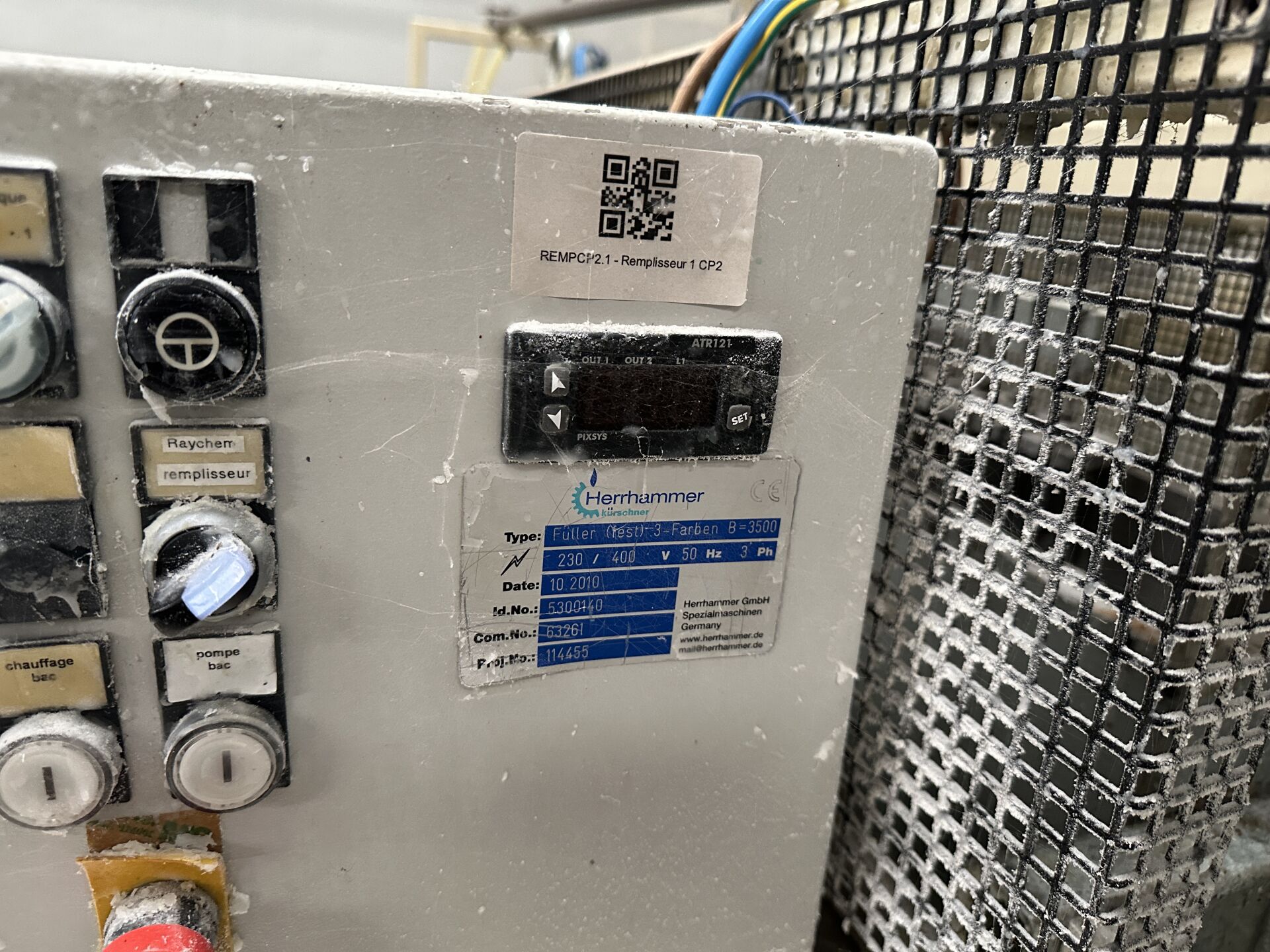 CP2 - FACULTE DE REUNION - ENCHERES PROVISOIRES (partie de la ligne de production de chauffe-plats blancs HERRHAMMER) : -1 bac remplisseur à débordement 75 têtes de dosage environ de 2010 -1 bac remplisseur mobile HBV400 400 L (frais de mise à disposition 50 € TTC)