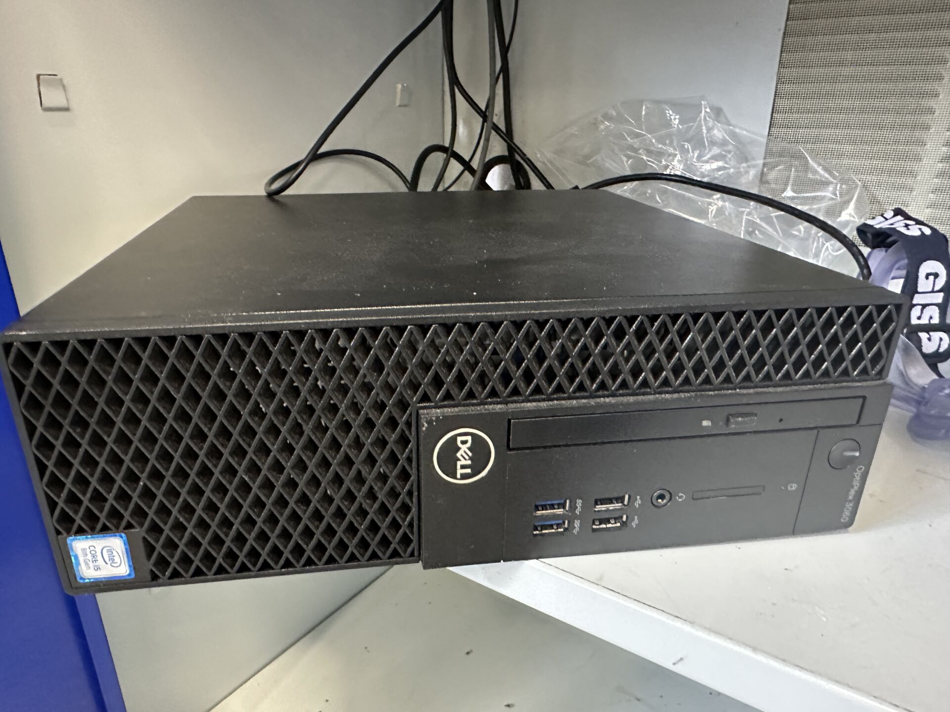 1 pupitre métal bleu et gris avec 1 configuration informatique : 1 UC DELL OPTIPLEX 3060 core i5, écran, clavier, souris, douchette (frais de mise à disposition 10 € TTC)