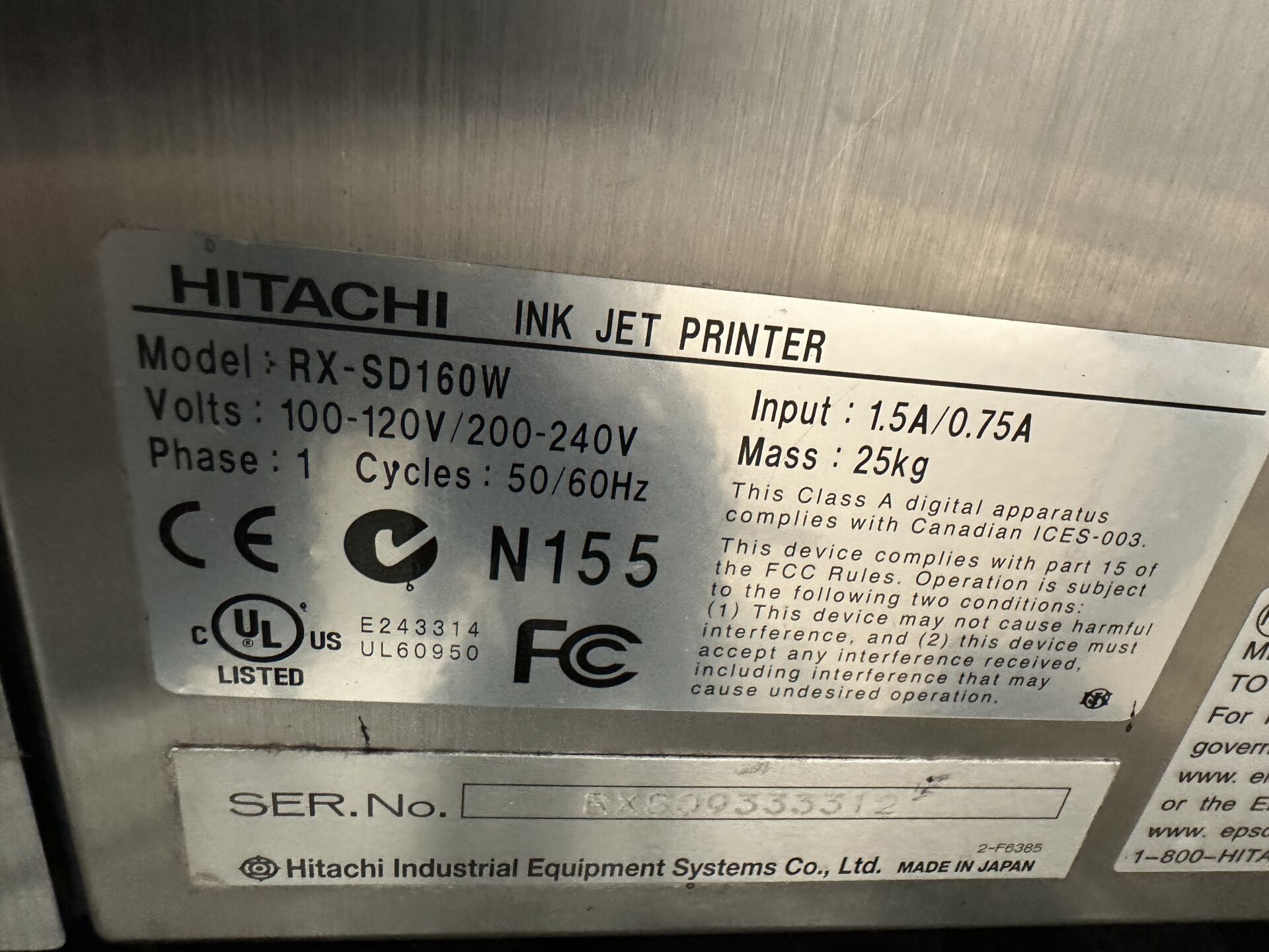 1 imprimante HITACHI INKJET PRINTER RX SD160 W No RXS09333312 sur support mobile (frais de mise à disposition 10 € TTC)