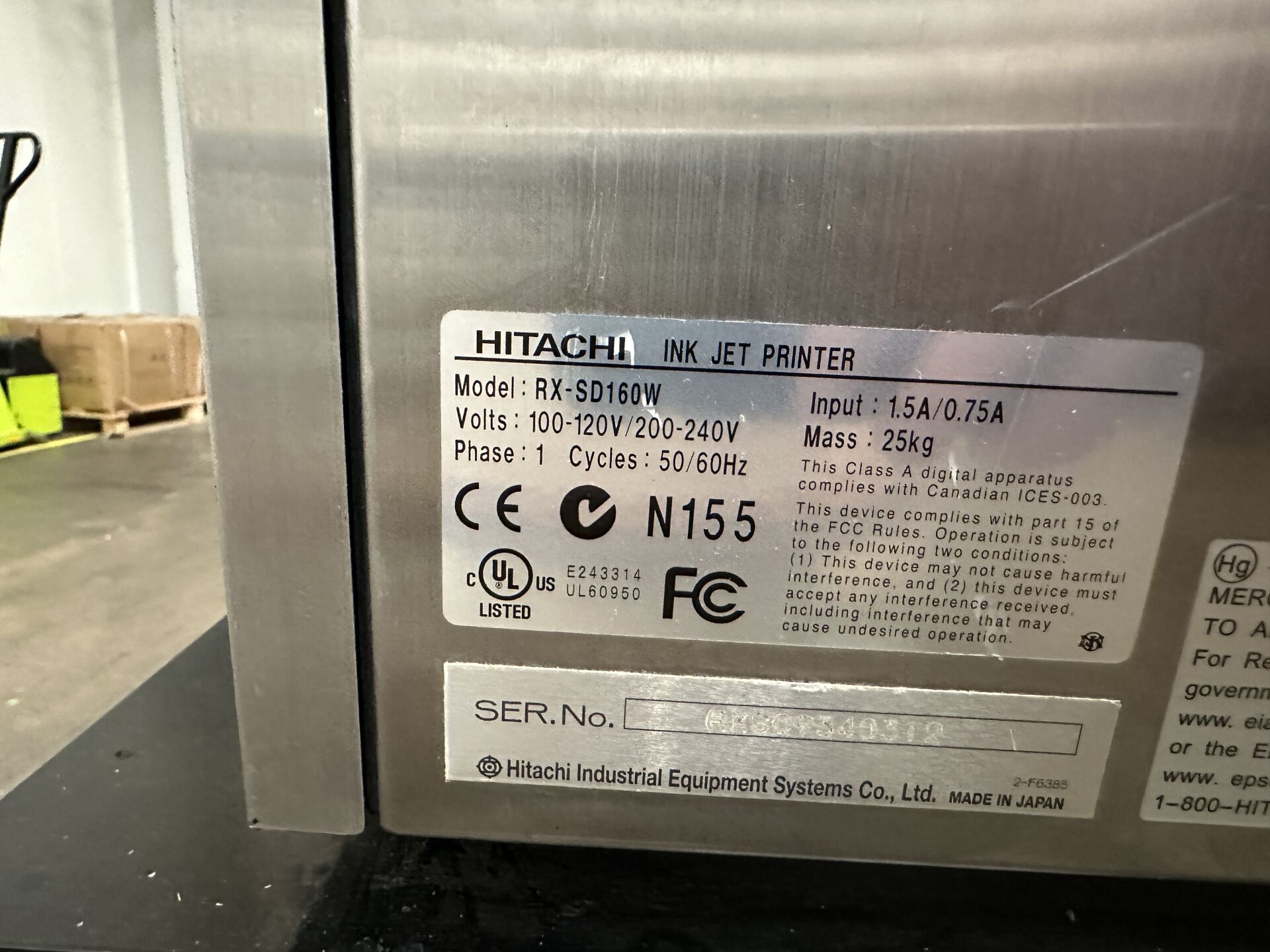 1 imprimante HITACHI INKJET PRINTER RX SD160 W No RXS09340312 sur support mobile (frais de mise à disposition 10 € TTC)