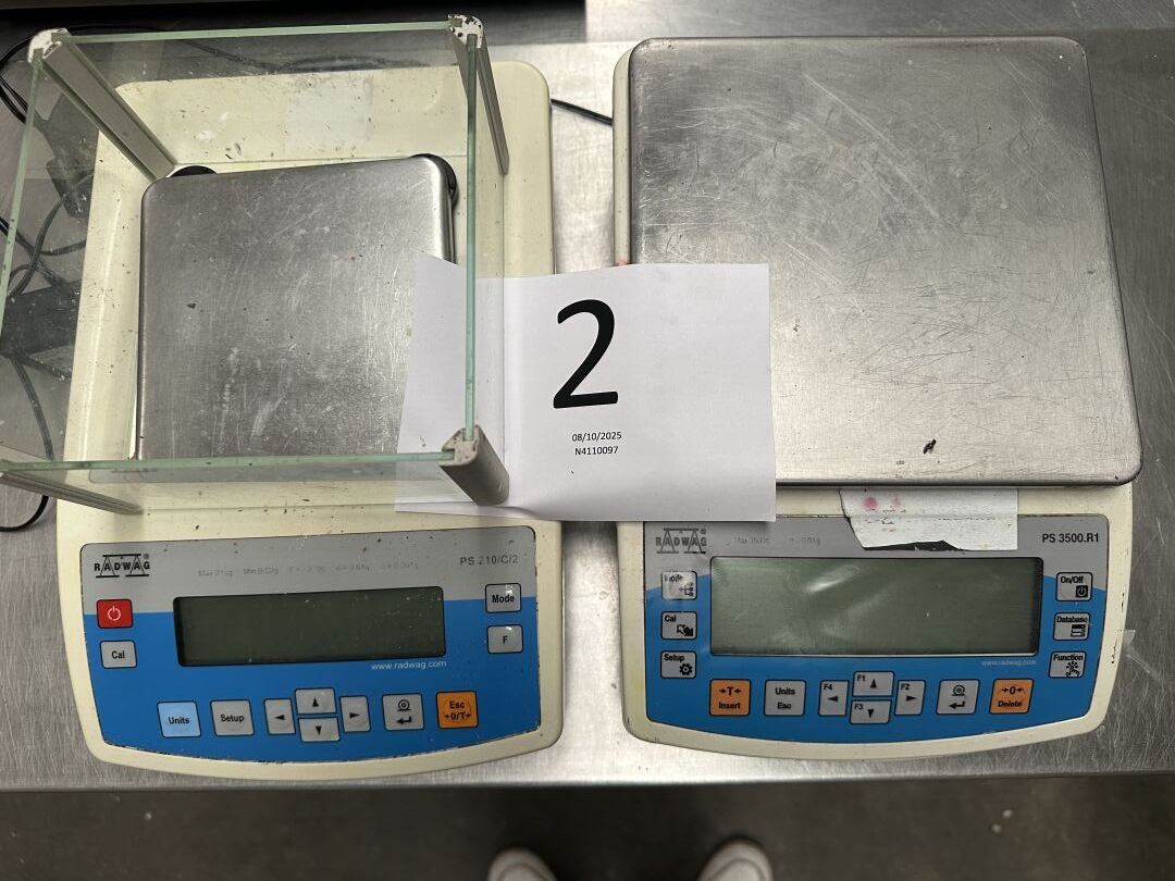 2 balances électroniques RADWAG : -1 PS 210/C/ max 210 g e : 0.01 g avec chargeur -1 PS 3500-R1 max 3500 g e : 0.01 g avec chargeur endommagé (frais de mise à disposition 10 € TTC)