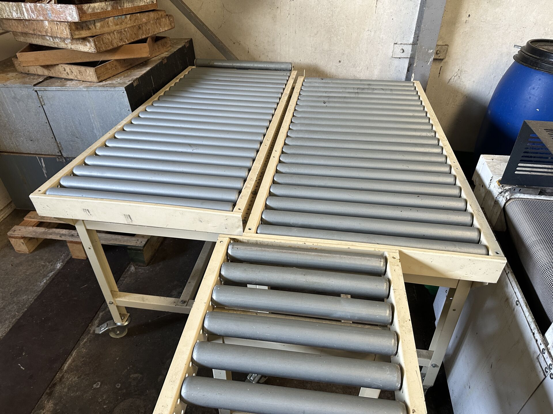 3 convoyeurs à rouleaux mobiles droits : 2 x 1500 x 600 mm et 1 de 2000 x 400 mm (frais de mise à disposition 10 € TTC)