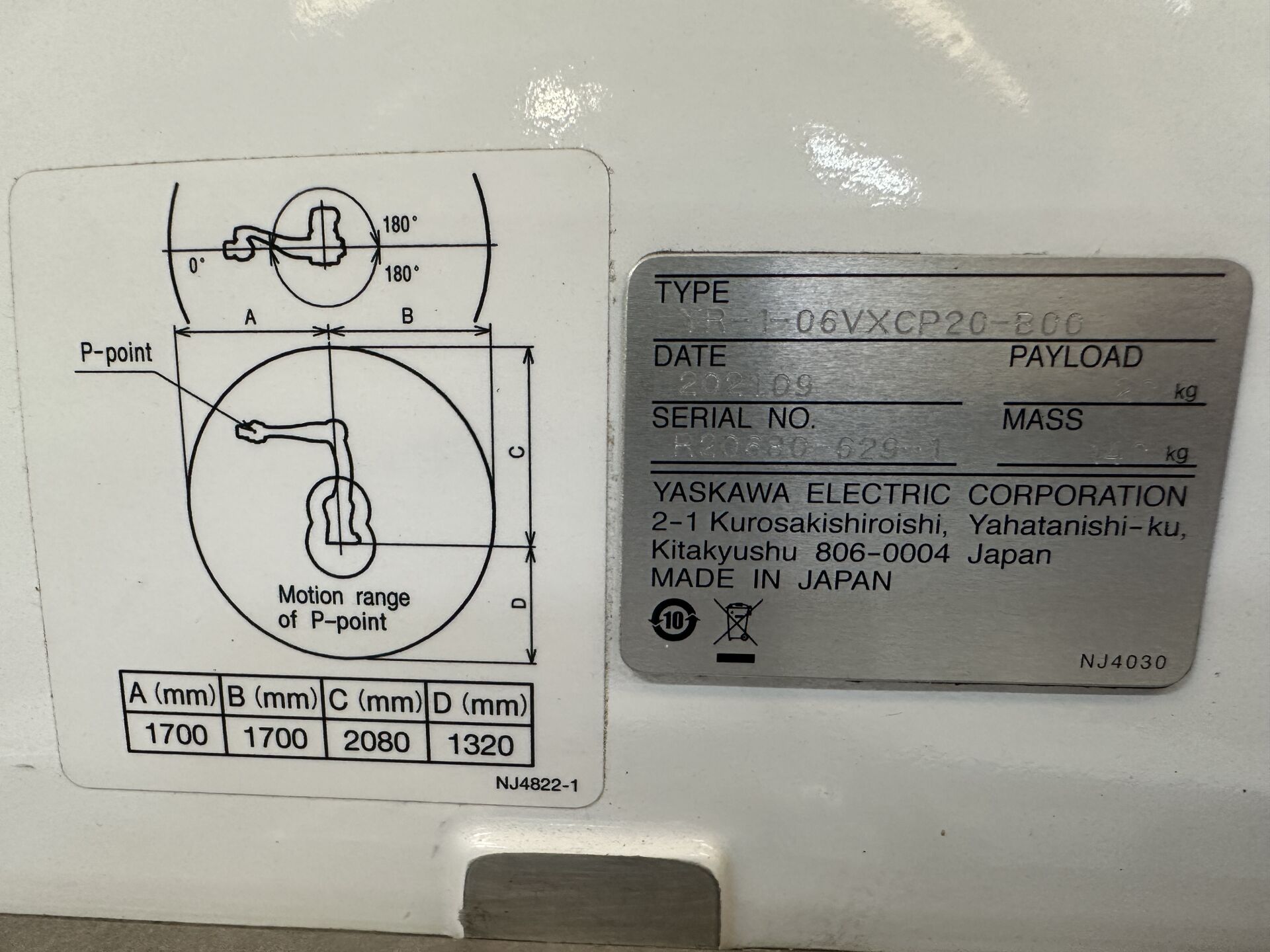 HALL 6 - Sur la ligne LR2 -1 robot palettiseur YASKAWA COBOT MOTOMAN HC20DTP No T21129C de 2023 type YR-1-06VX0P20-300, No de série R20680-629-1 sur base ERAS-1000-06VXH25-E13 de 2022 (frais de mise à disposition 1500 € TTC)